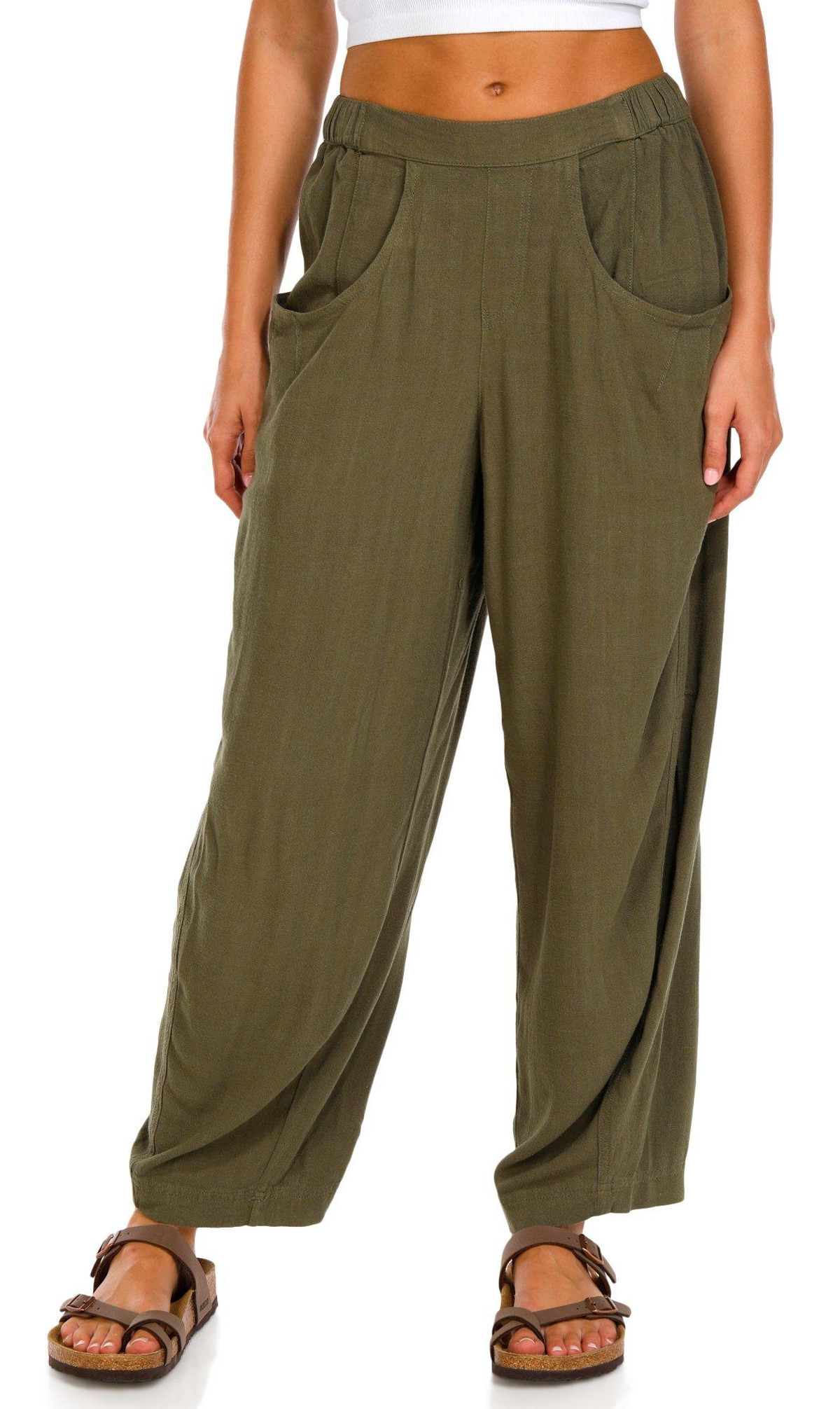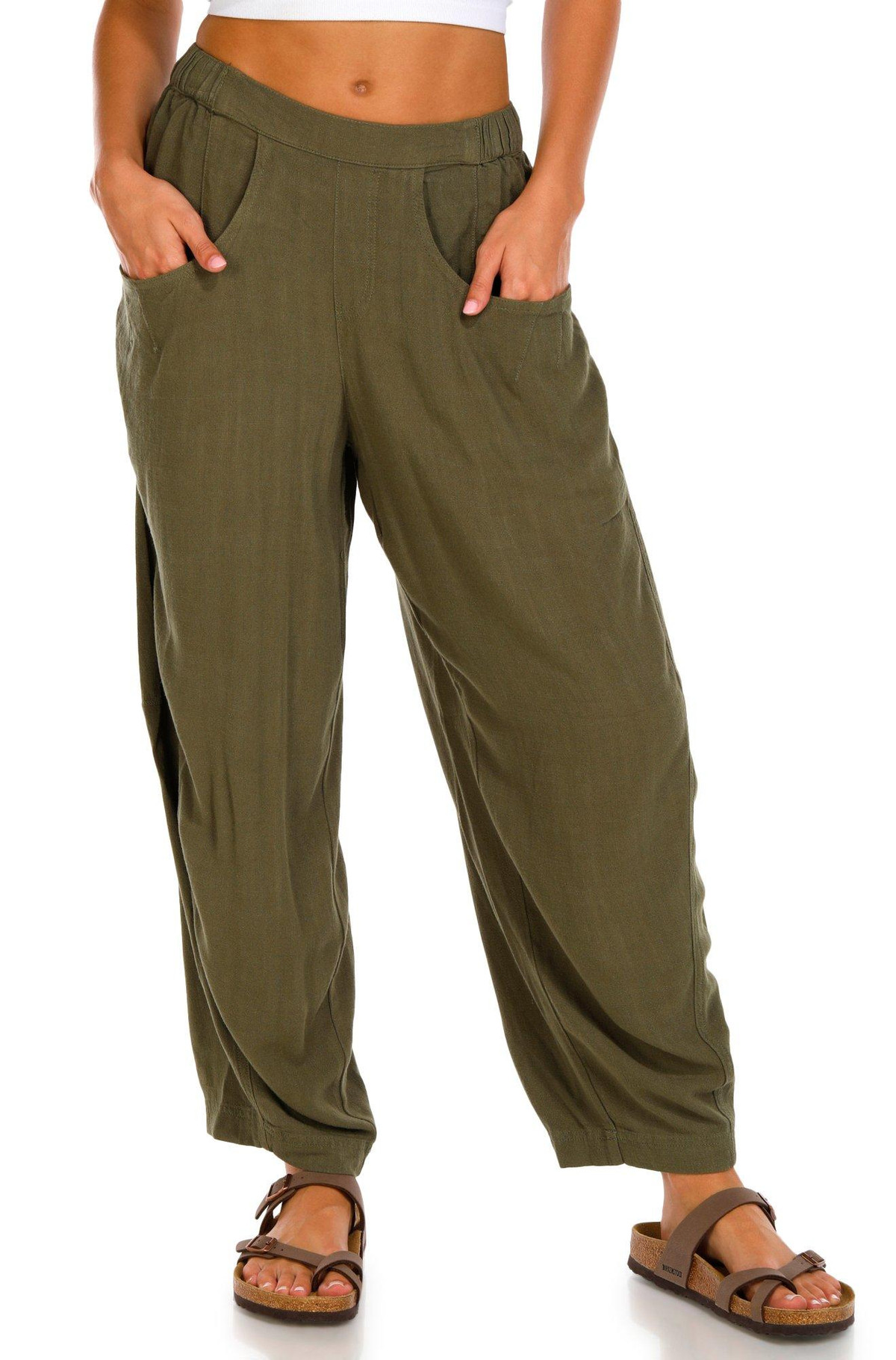 These barrel leg pants feature a solid color and are crafted from a soft linen blend for breathable comfort. With a relaxed shape and easy style, they’re perfect for everyday wear in warm weather. Fabrication is 85% rayon, 15% linen.
