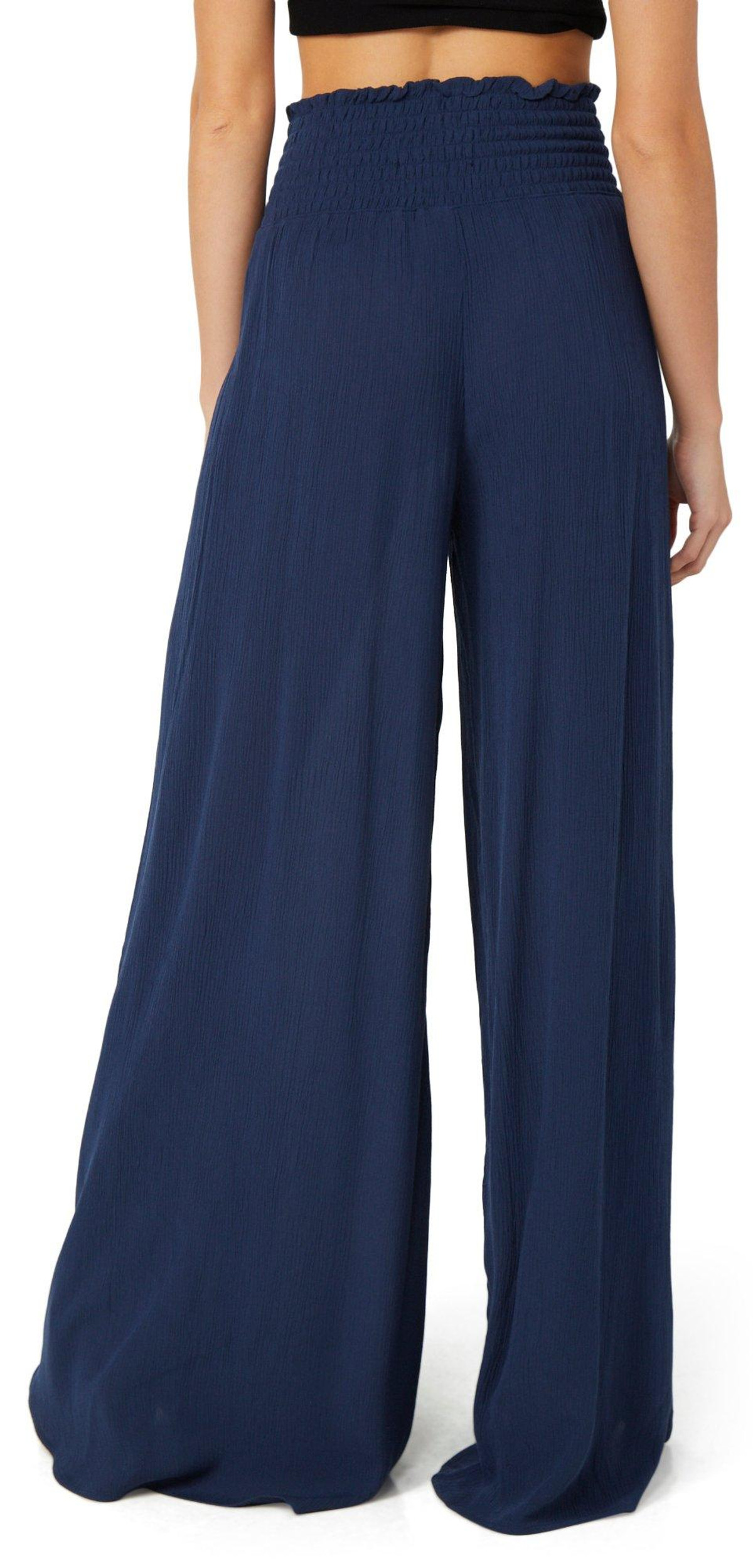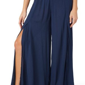 Breeze through your day in these Juniors Solid Wide Leg Pants. Featuring a smocked waistband for all-day comfort, a flowy wide-leg silhouette, and chic side slits, they are perfect for effortless style with a touch of flair. Fabrication 100% rayon