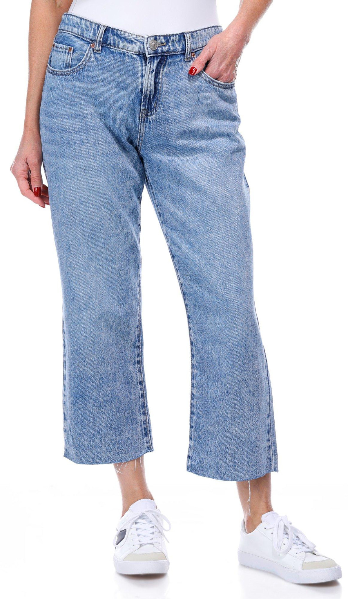 Introducing the Juniors Straight Leg Crop Jeans, crafted from a comfortable cotton blend for a perfect fit. These jeans feature a classic 5-pocket cut and a button-fly zip closure, combining functionality with style. The cropped length and straight leg fit offer a modern, trendy look, making them ideal for any casual or chic outfit.