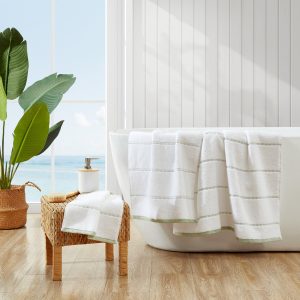 Wrap yourself in tropical comfort with the Tommy Bahama Ridely 3-piece bath towel set. Our towels will coordinate with any bathroom décor. Constructed with high quality cotton, it seamlessly brings a pop of color and style to your home. These towels have a substantial 600 GSM, durable and quick drying zero twist construction. The zero-twist construction allows for these fluffy towels to be soft on the skin. 3 pc set includes: Bath towel (54x30in.), hand towel (30x16in.), washcloth (13x13in.).