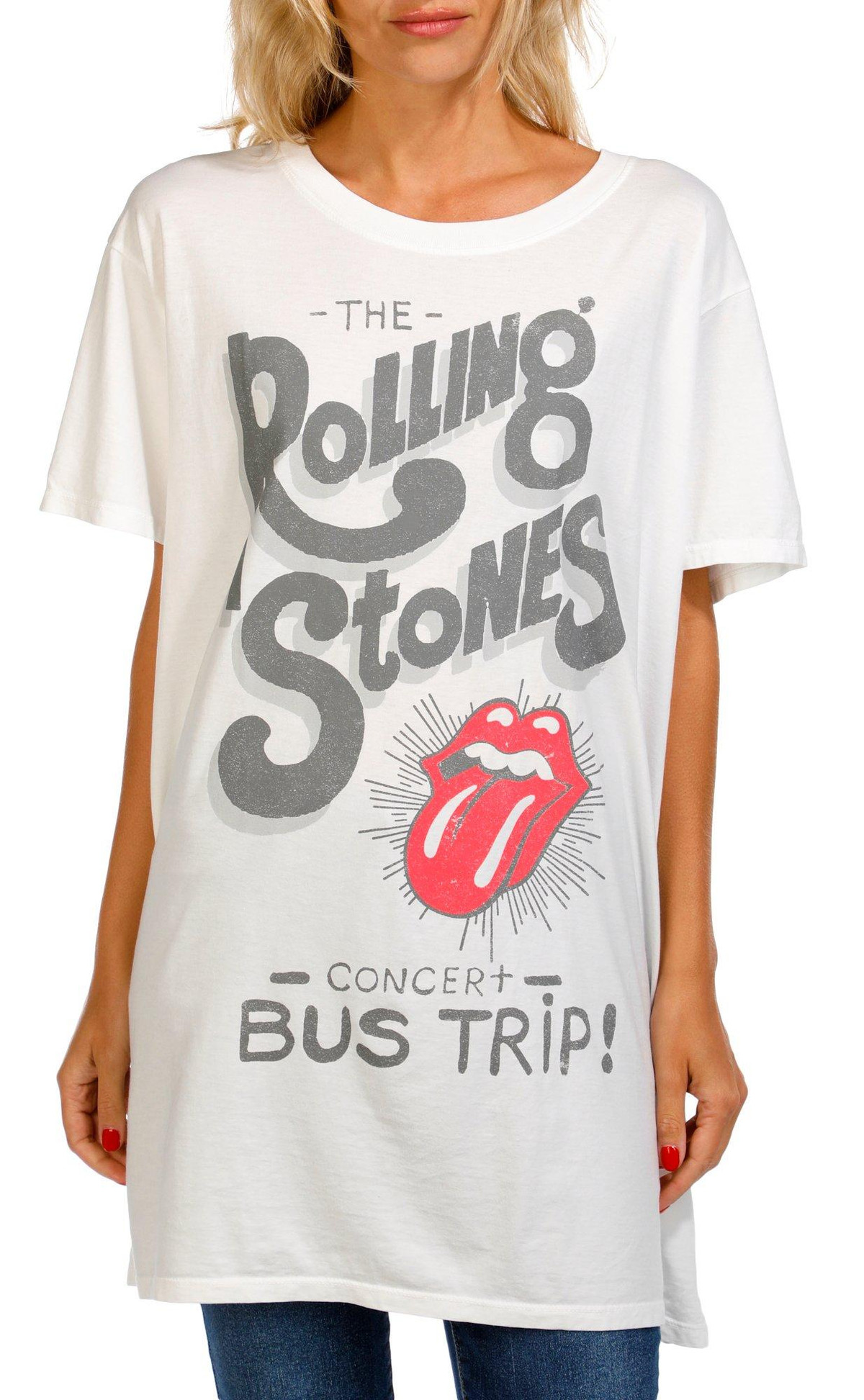 Embrace music vibes with this Juniors Bus Trip Graphic T-Shirt. Made from premium cotton, this tee features a Rolling Stones concert graphic design, with short sleeves and a classic crew neckline. Perfect for casual outings or cool nights at the beach, this t-shirt combines comfort and style effortlessly, making it a versatile addition to your wardrobe. Fabrication is 100% cotton. Top length measures approximately 31 in.