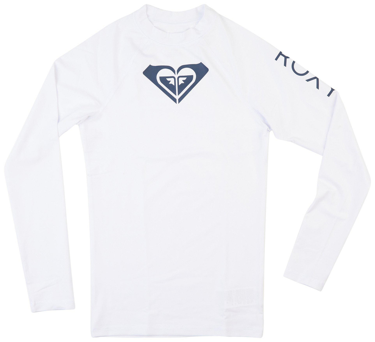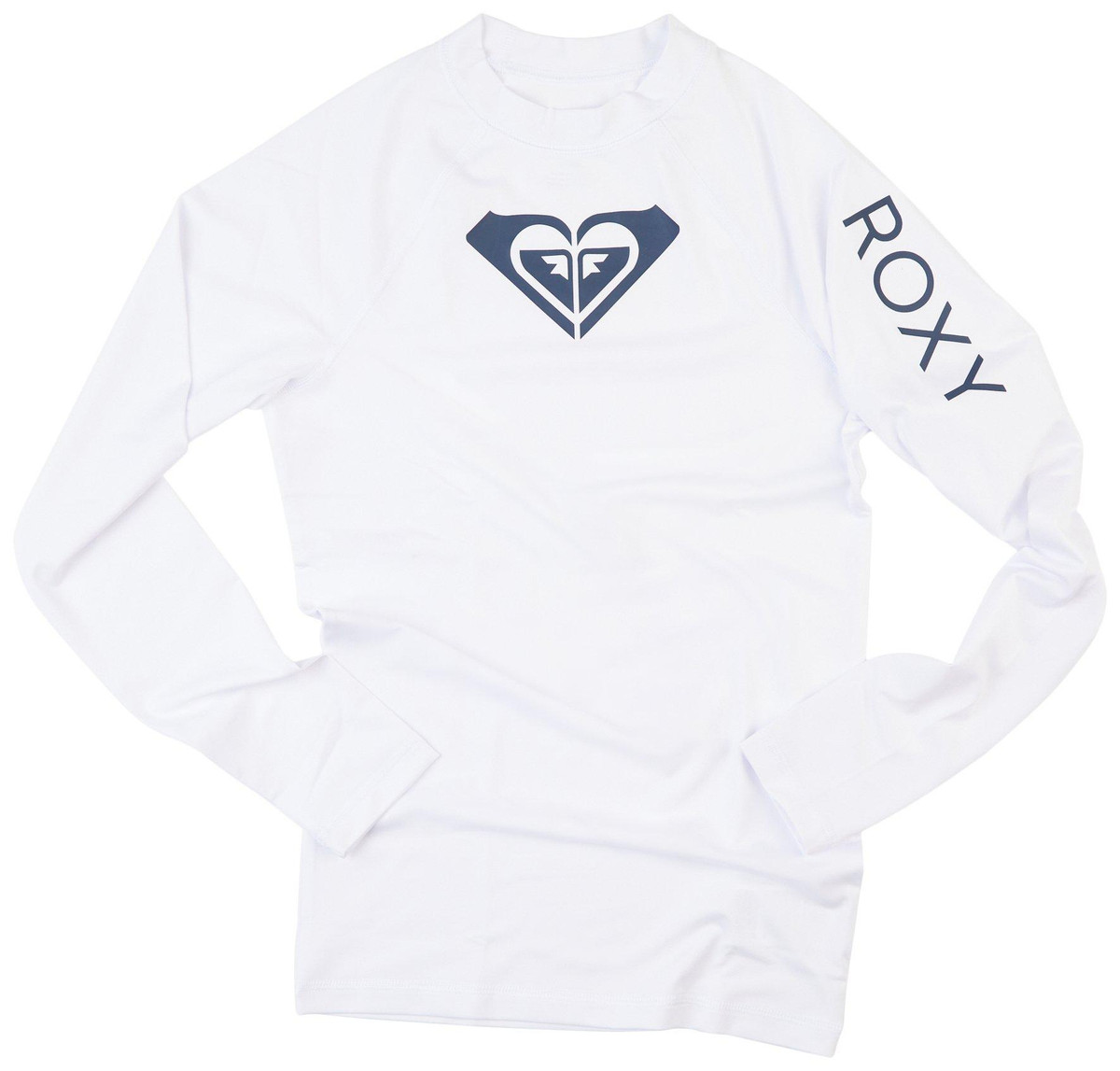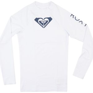 This Roxy long-sleeve rash guard delivers a sleek fit with a crewneck cut for all-day comfort. Crafted from breathable stretch fabric, it moves easily through water and sun. The screen logo adds a sporty touch to the front and sleeve, while UPF 50 protection and elastane keep her shielded and flexible. Ideal for active days under the sun.