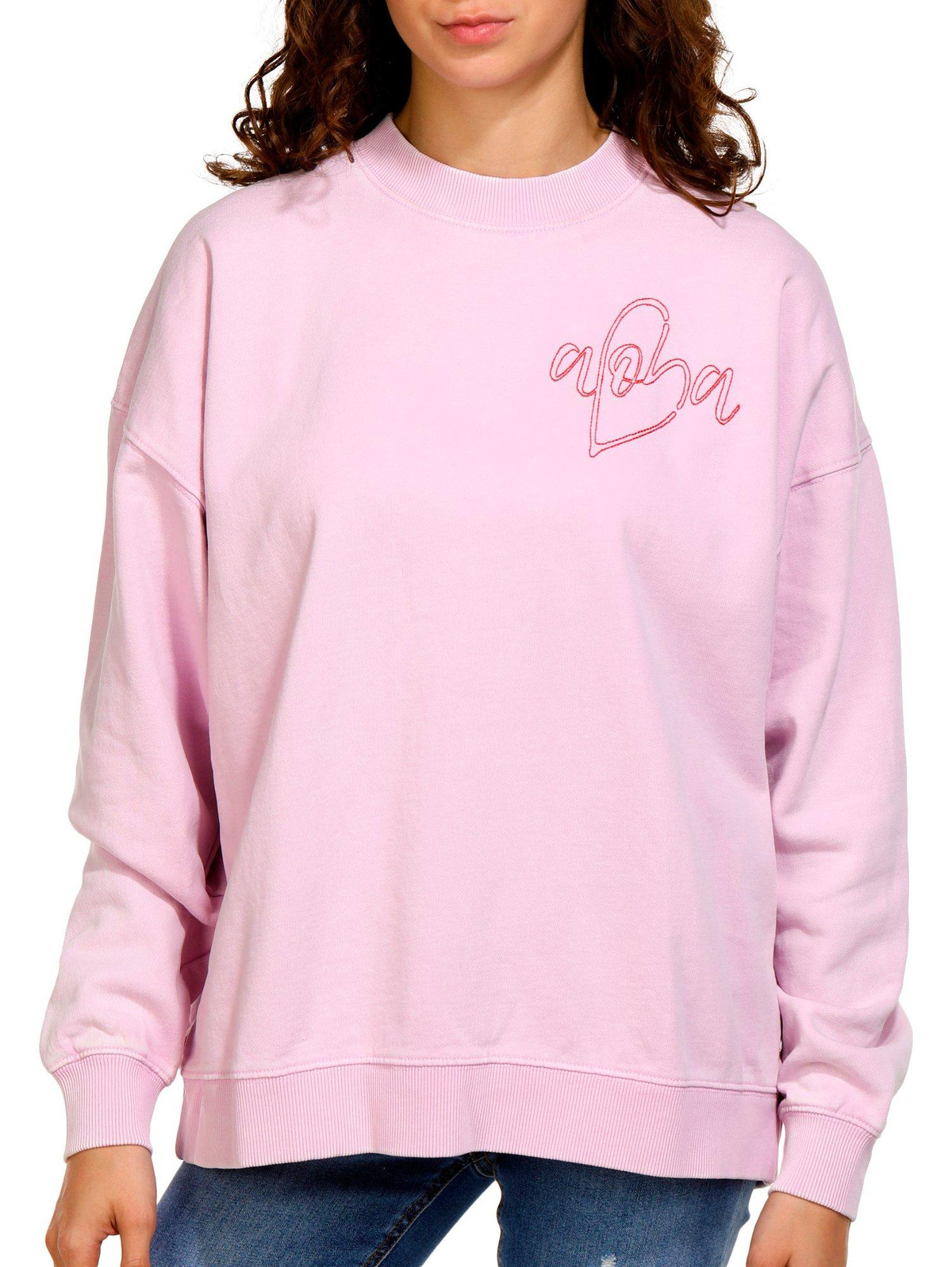 Introducing the Juniors Aloha Crew Neck Sweater, crafted from a blend of cotton and polyester for a soft and comfortable feel. This stylish sweater features a cheerful Aloha script on the chest, a classic crew neckline, and a cozy fleece inner lining. Perfect for adding a touch of warmth and fun to your casual wardrobe.