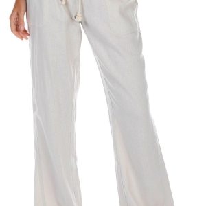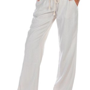 The Juniors Oceanside Pants offer laid-back comfort with a solid color, smocked waistband, and drawstring tie for a perfect fit. Featuring front patch pockets, back pockets, and a 32-inch inseam, they are ideal for relaxed days with a touch of utility style. Fabrication 55% linen, 45% viscose