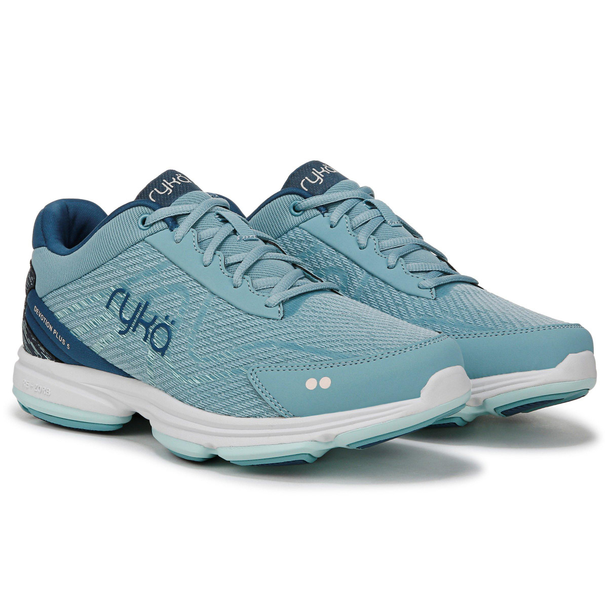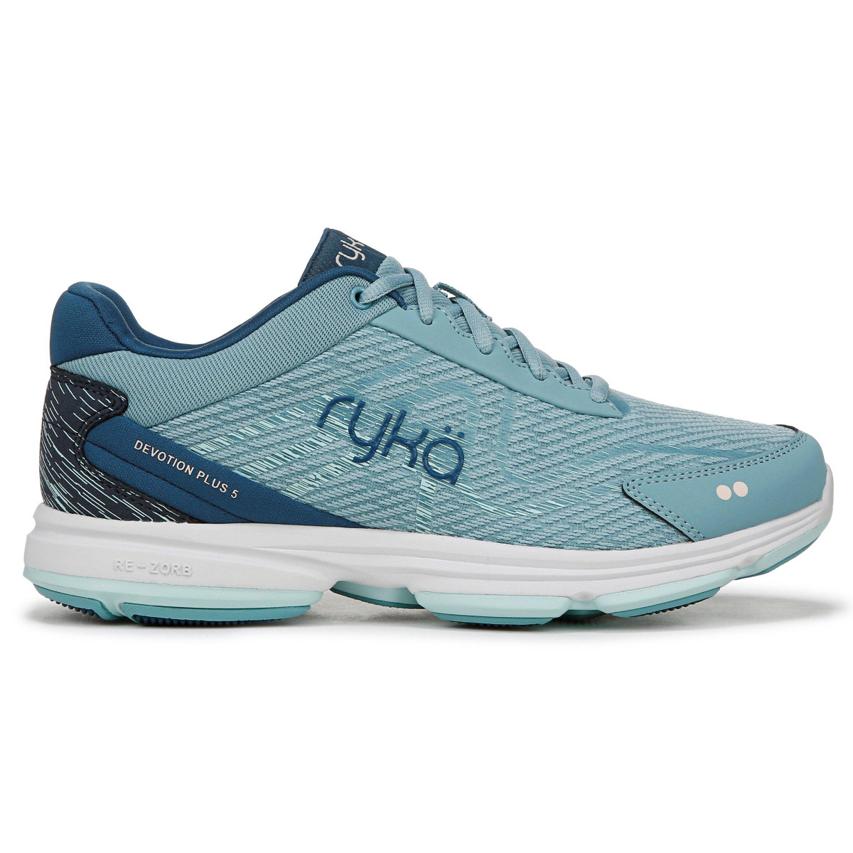 Get the comfort and performance you need every time you exercise in these light and comfortable Ryka Devotion Plus 5 walking sneakers. An update to a top-rated favorite with exceptional cushion, shock absorption, and our powerful Made for Women fit. Breathable engineered mesh with faux leather overlays and padded tongue and heel collar. Insole: anatomical insole with extra arch support and heel support and partially recycled EVA.