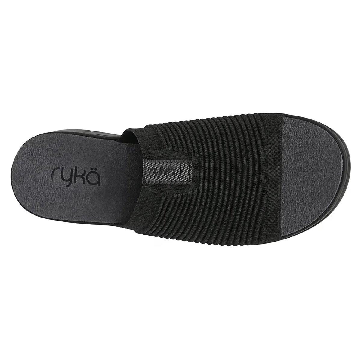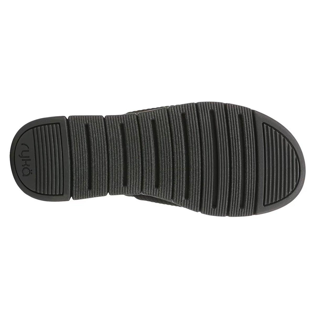 Slip into a breezy style with the Epic wedge sandals from Ryka. This pair takes inspiration from a classic slide style, featuring a classic thick ribbed band strap and a slight wedge heel.