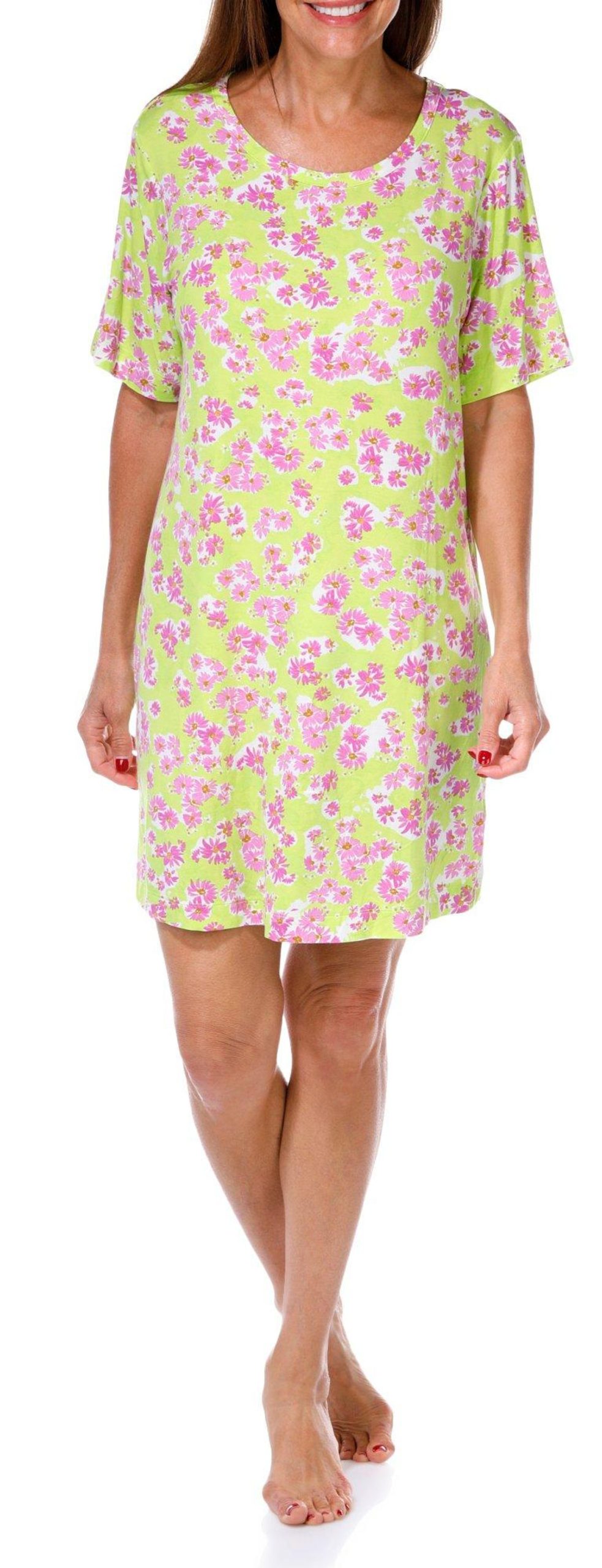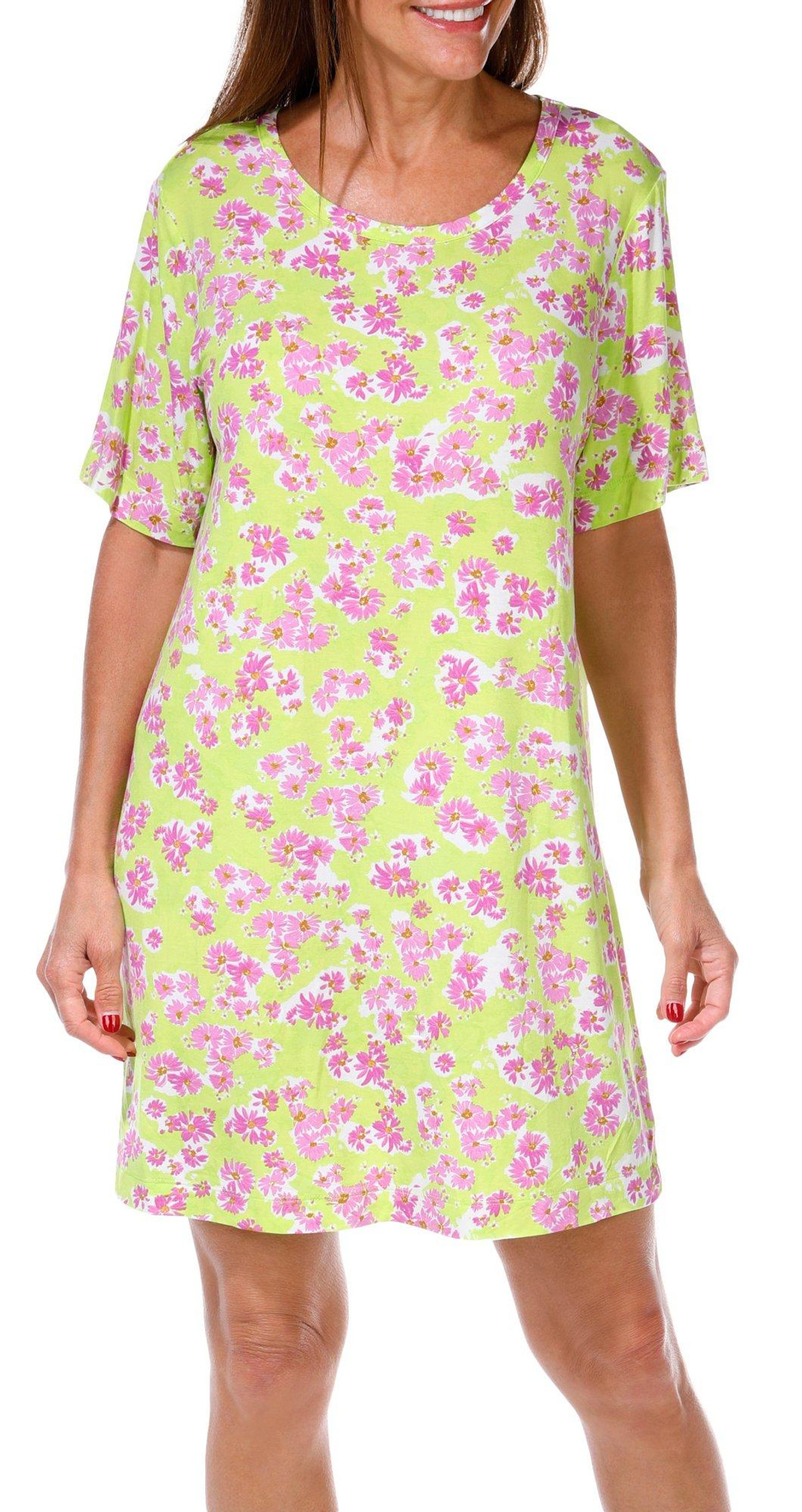 Slip into softness with this short sleeve sleepshirt, designed in a floral pattern and made from ultra cozy fabric that feels gentle against the skin. Its relaxed fit and breezy silhouette make it perfect for winding down or lounging in comfort. Fabrication is 93% modal, 7% elastane