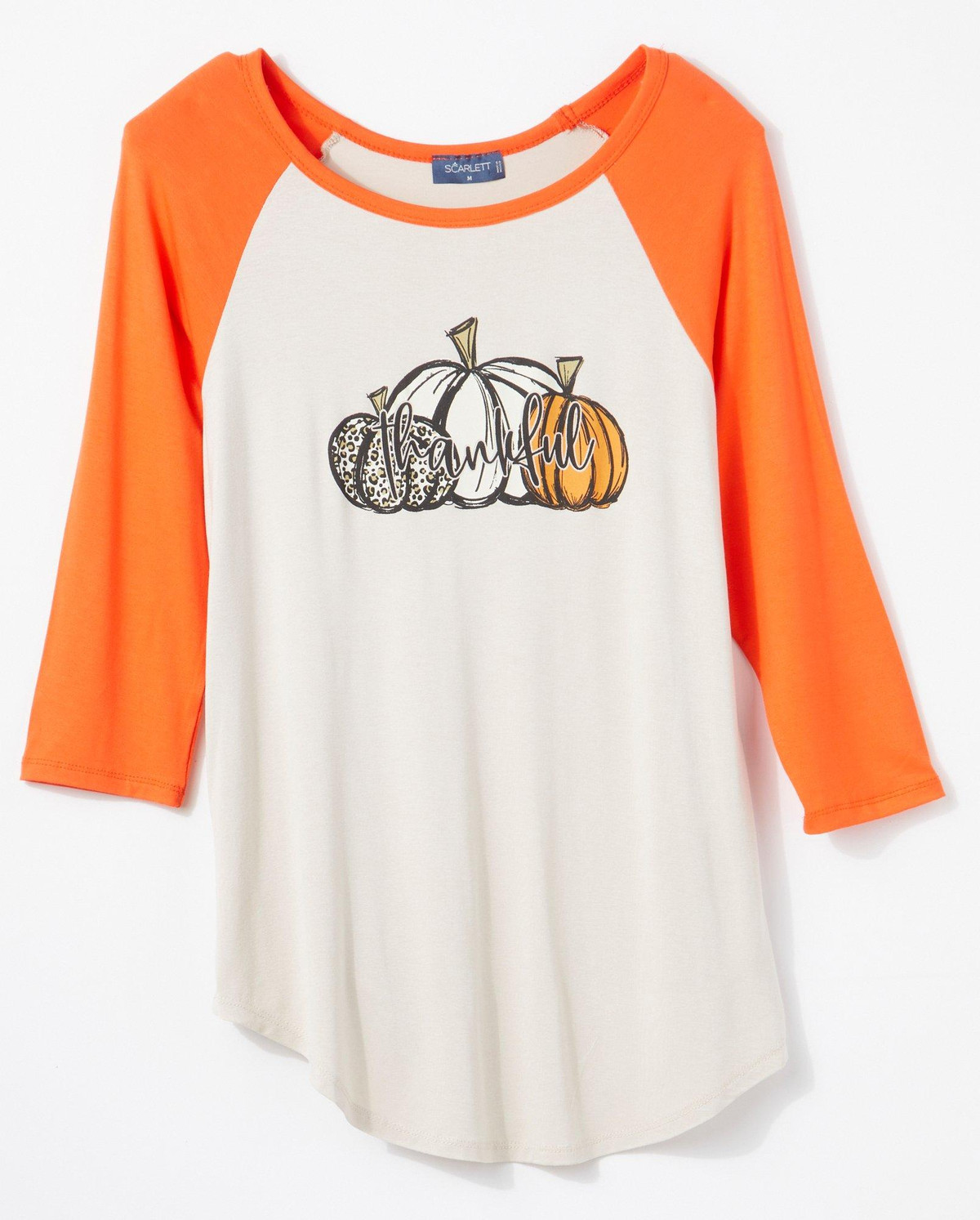 Celebrate gratitude in style with the Womens 3/4 Sleeve Soutache Pumpkin Thankful Top. Crafted from a soft, breathable blend of 95% rayon and 5% spandex, it offers gentle stretch and all-day comfort. The elegant soutache pumpkin design pairs beautifully with the embroidered Thankful sentiment, creating a look thats both festive and meaningful. With its flattering 3/4 sleeves and warm seasonal tones, this top is perfect for family gatherings, fall festivals, or simply savoring the season.