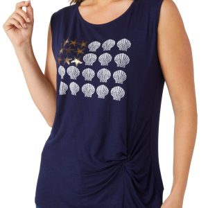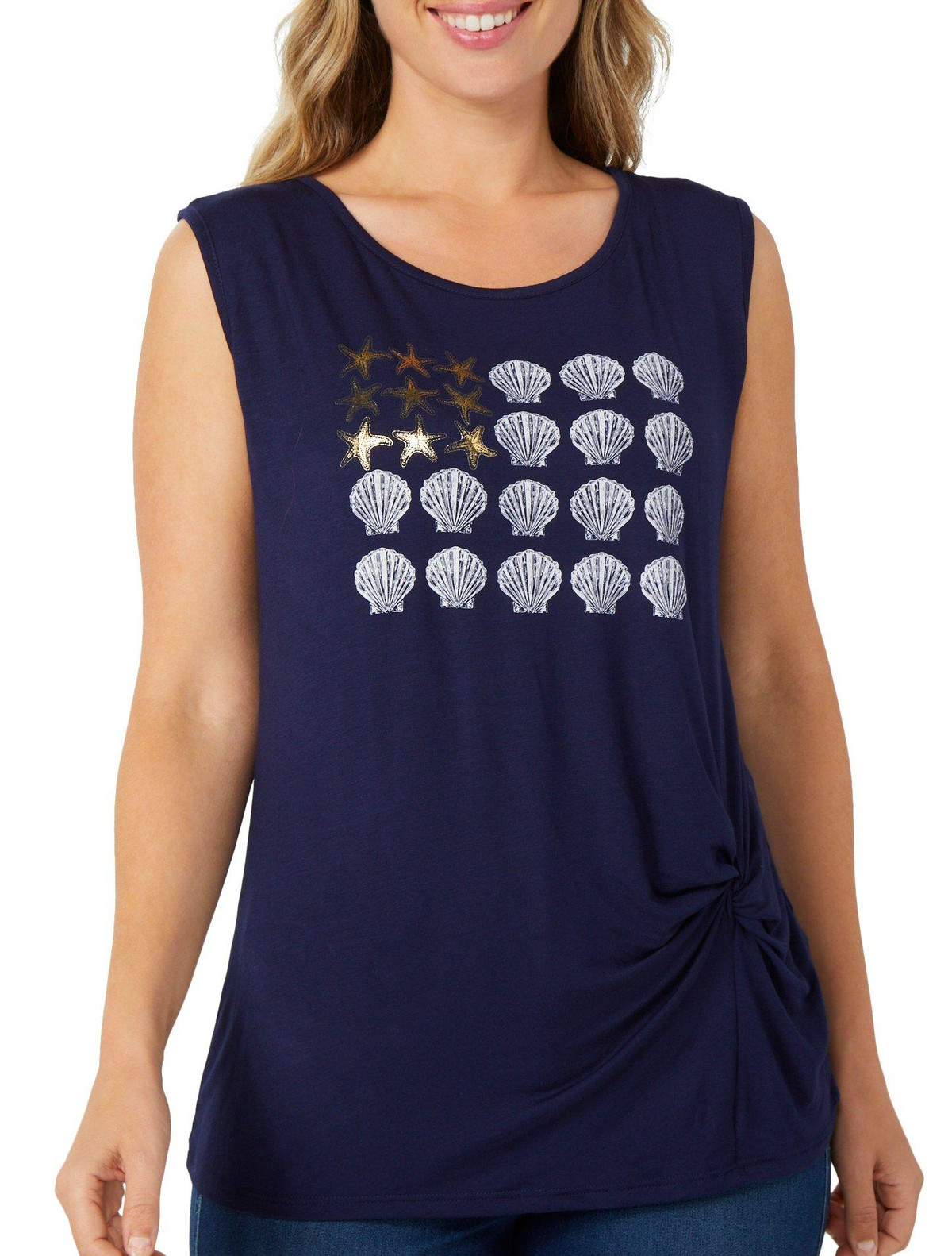 This sleeveless tank brings effortless style with a patriotic twist. Made from soft, breathable fabric, it features a bold front print and playful side tie detail for a flattering fit. Perfect for summer days, backyard BBQs, or festive celebrations, this tank adds comfort and charm to any casual look. Fabrication is 95% rayon, 5% spandex.