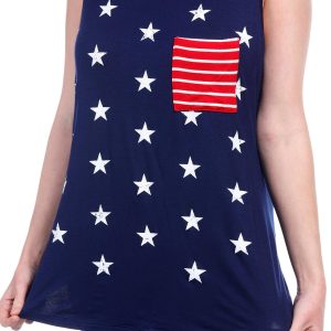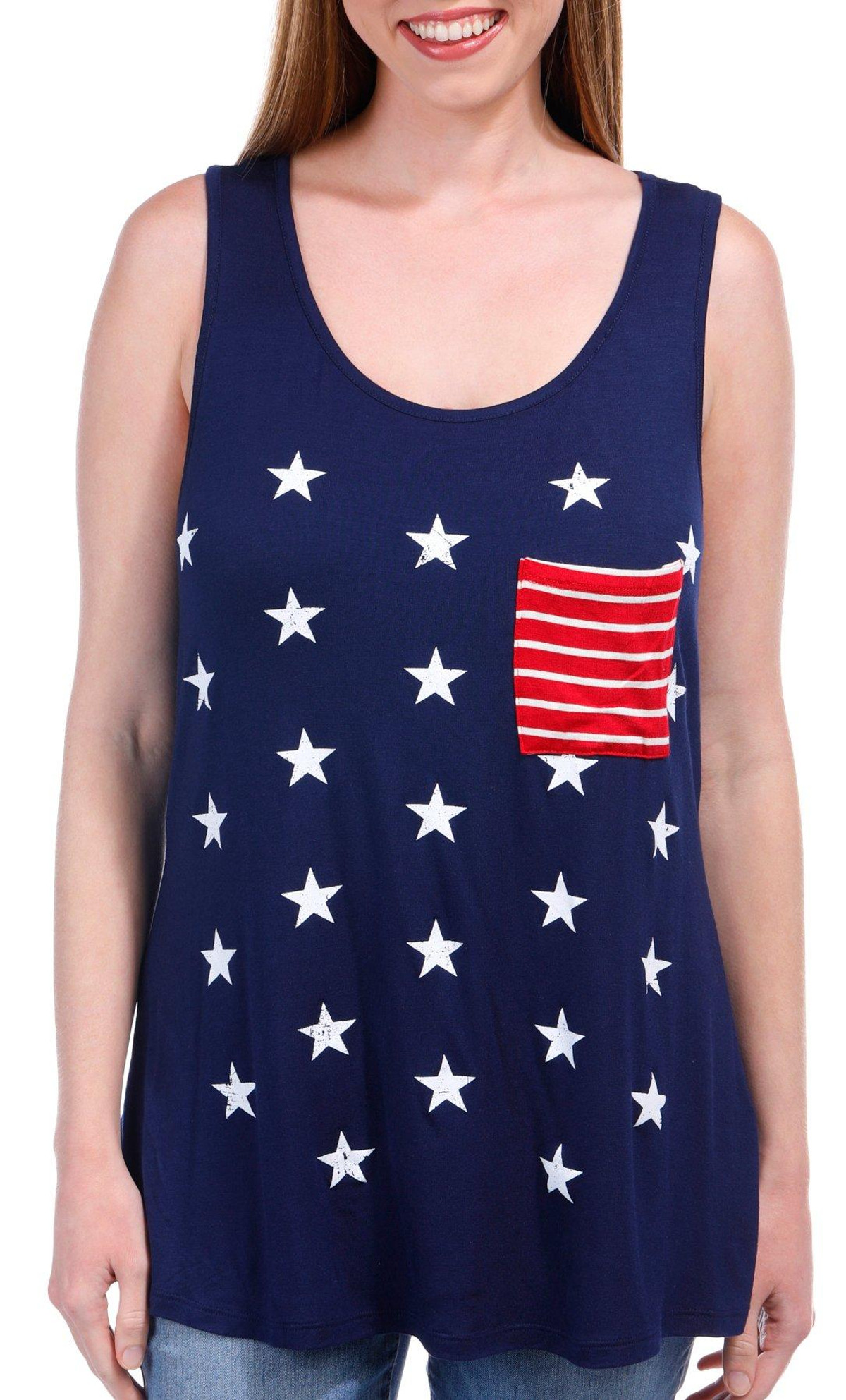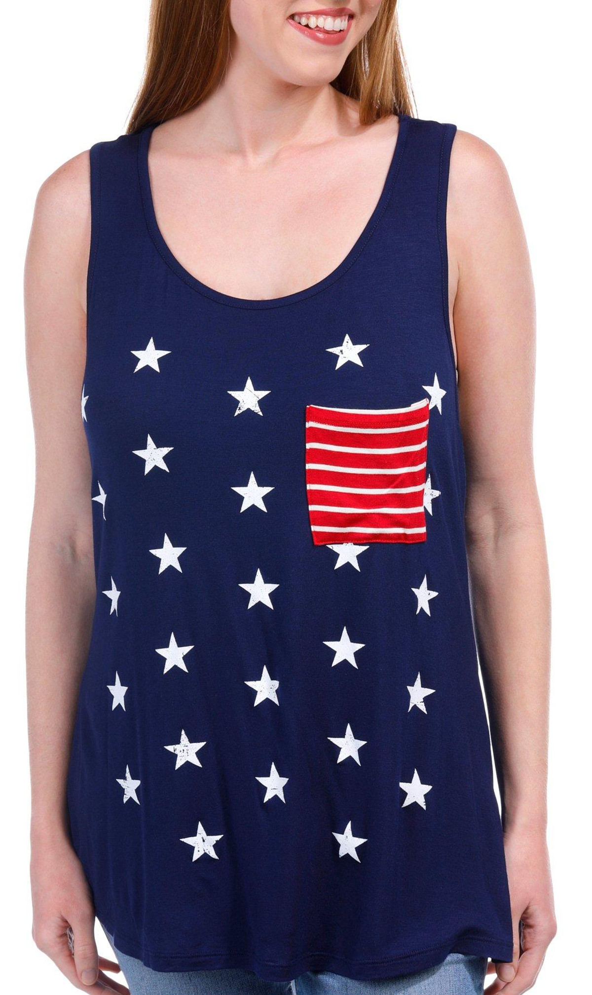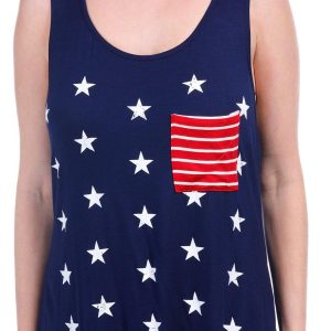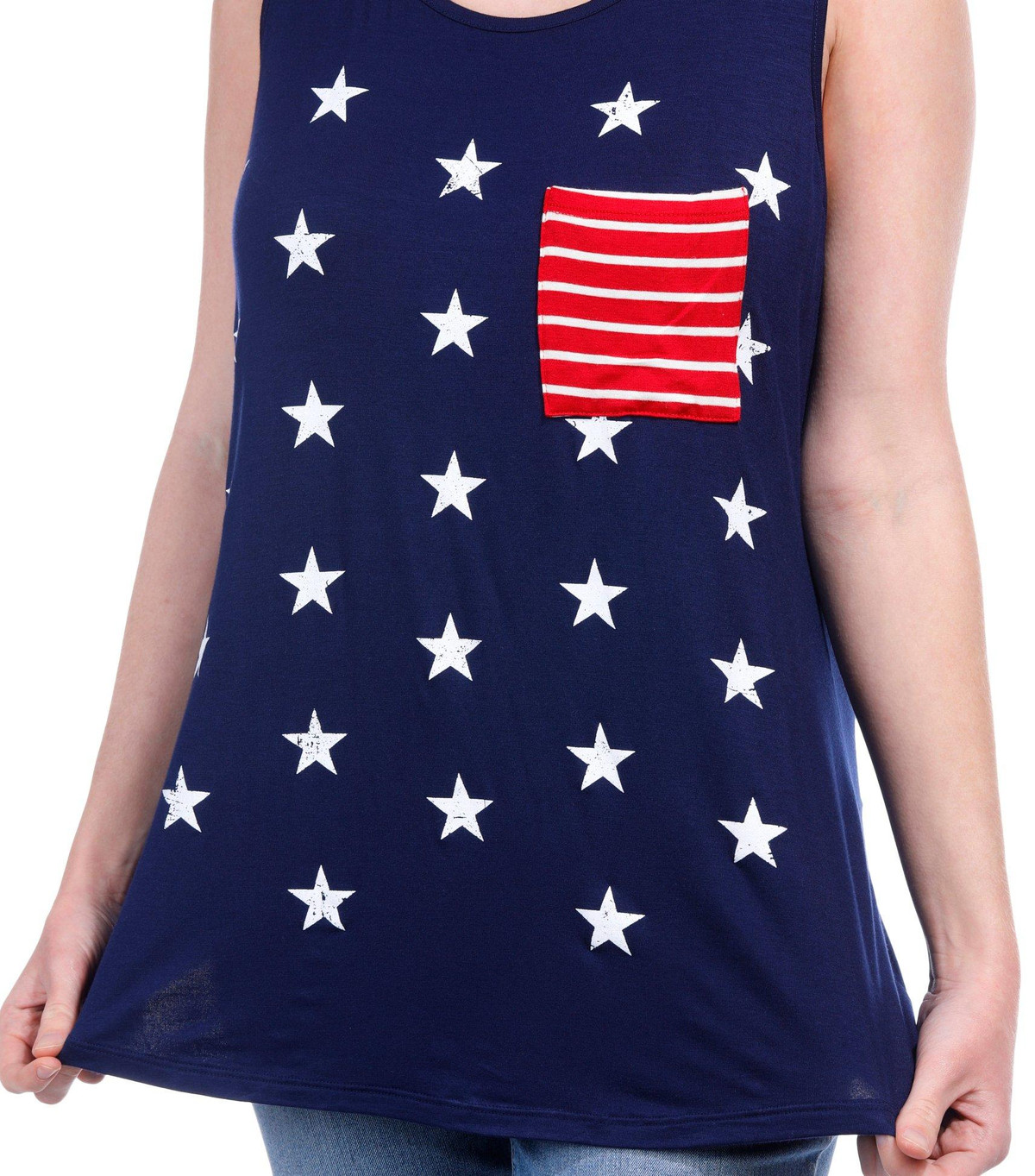 Show off your patriotic spirit with this Stars & Stripes Tank Top. Featuring an Americana inspired print, racerback design, and a handy chest slip pocket, it is perfect for summer days, barbecues, and festive celebrations. Fabrication is 95% rayon and 5% spandex.