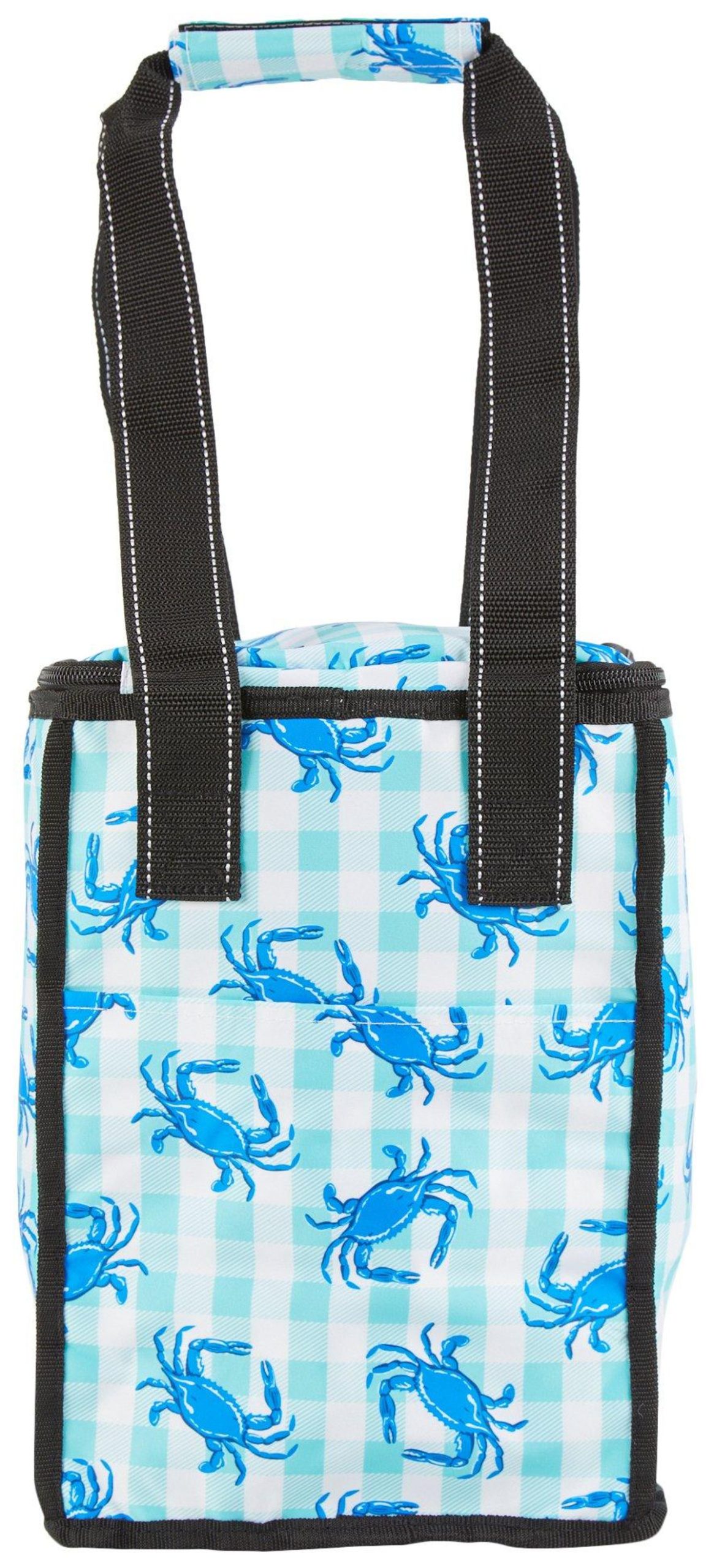 or weekend getaways. The black straps and white stitching add a classic touch. Two exterior pockets offer quick access to essentials. A heat-sealed, food-safe liner keeps bottles chilledjust add ice packs. Folds flat for easy packing, making it a stylish and practical travel companion or a thoughtful hostess gift. Measures 9 x 12.5 x 9 inches.
