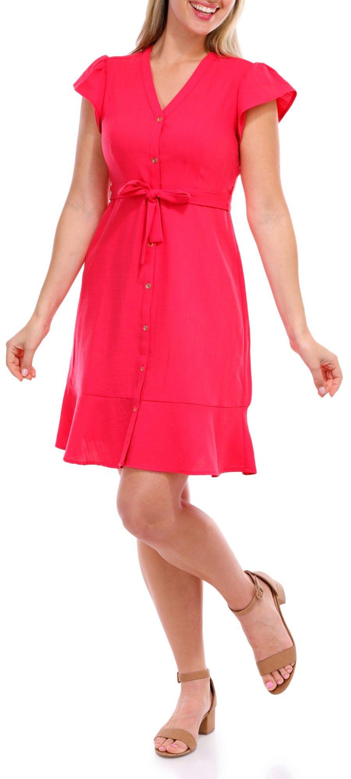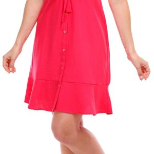 Sharagano Womens Cap Sleeve Zaria Buttoned Linen Dress