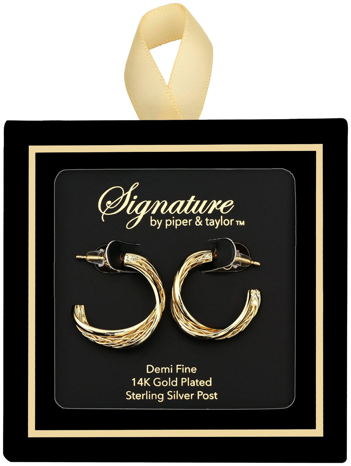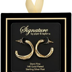 Add a touch of sophistication to your jewelry collection with our Signature 0.75 in. 3 Row Twist Gold Plated Hoop Earrings. These exquisite hoops feature a unique three-row twist design that creates depth and movement, making them a striking accessory for any occasion. Measuring 0.75 inches in diameter, they offer a perfect blend of subtle elegance and eye-catching style. The luxurious gold plating ensures a radiant finish that complements any outfit, from casual to formal.