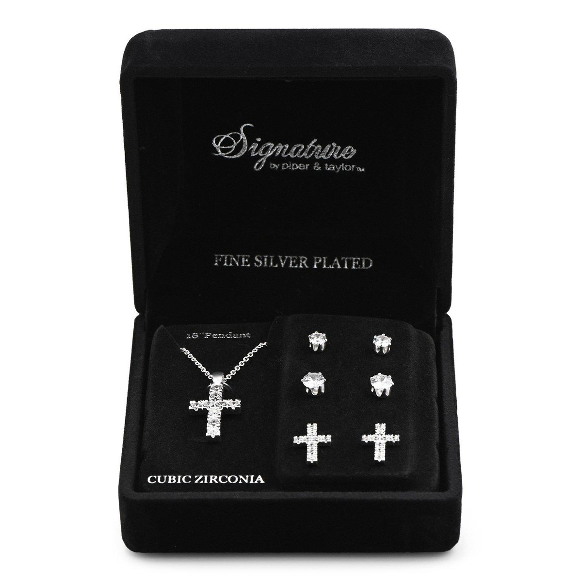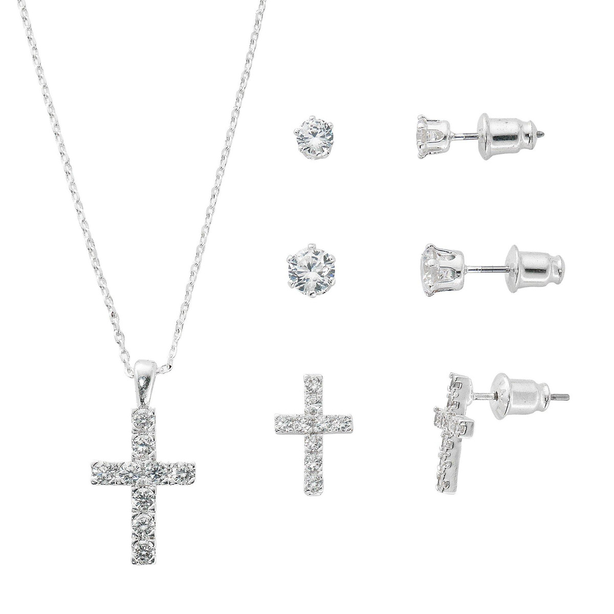 Signature Cross Necklace & 3-Pk. Earrings Set