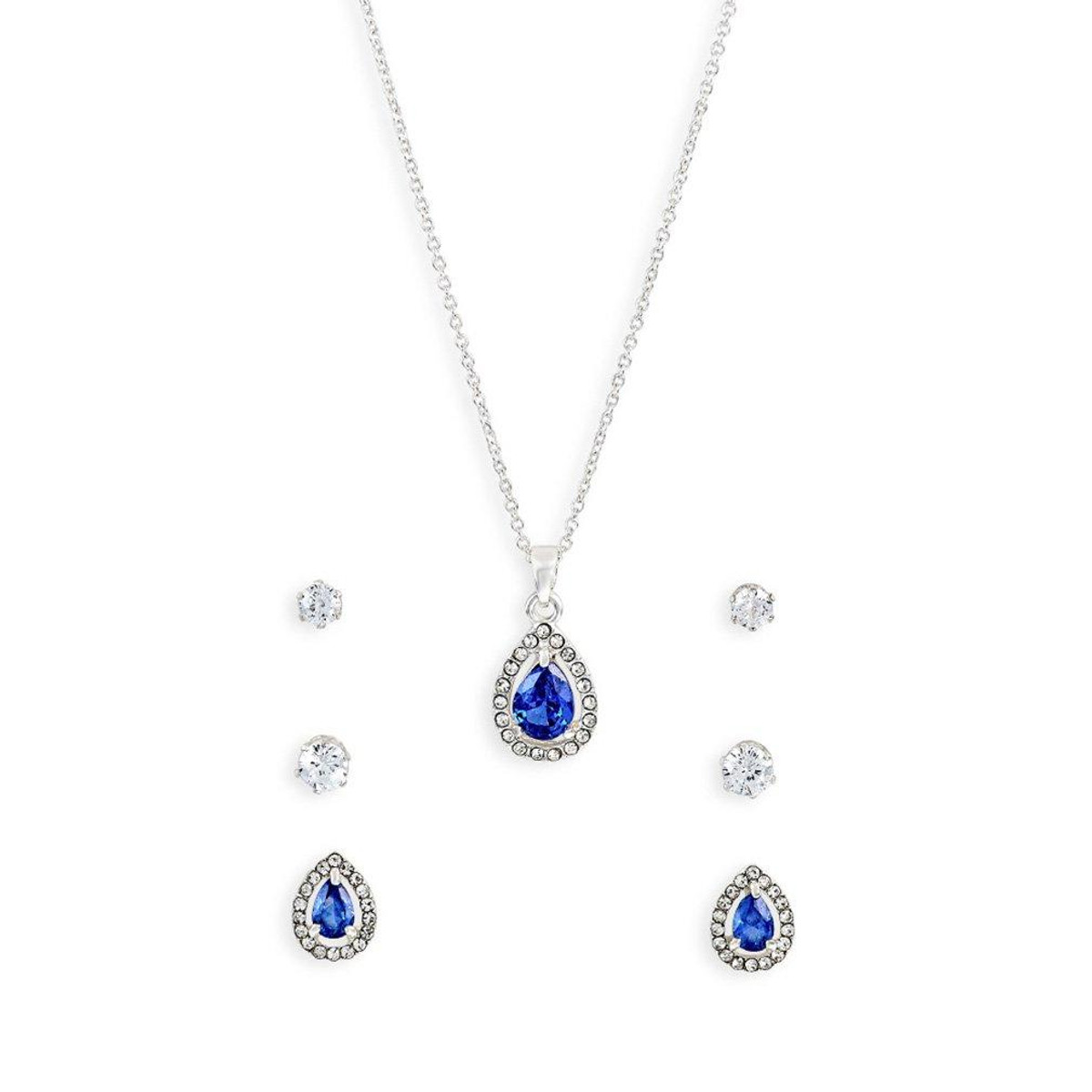 Signature CZ Blue Tear Drop Necklace & 3-Pc. Earrings Set