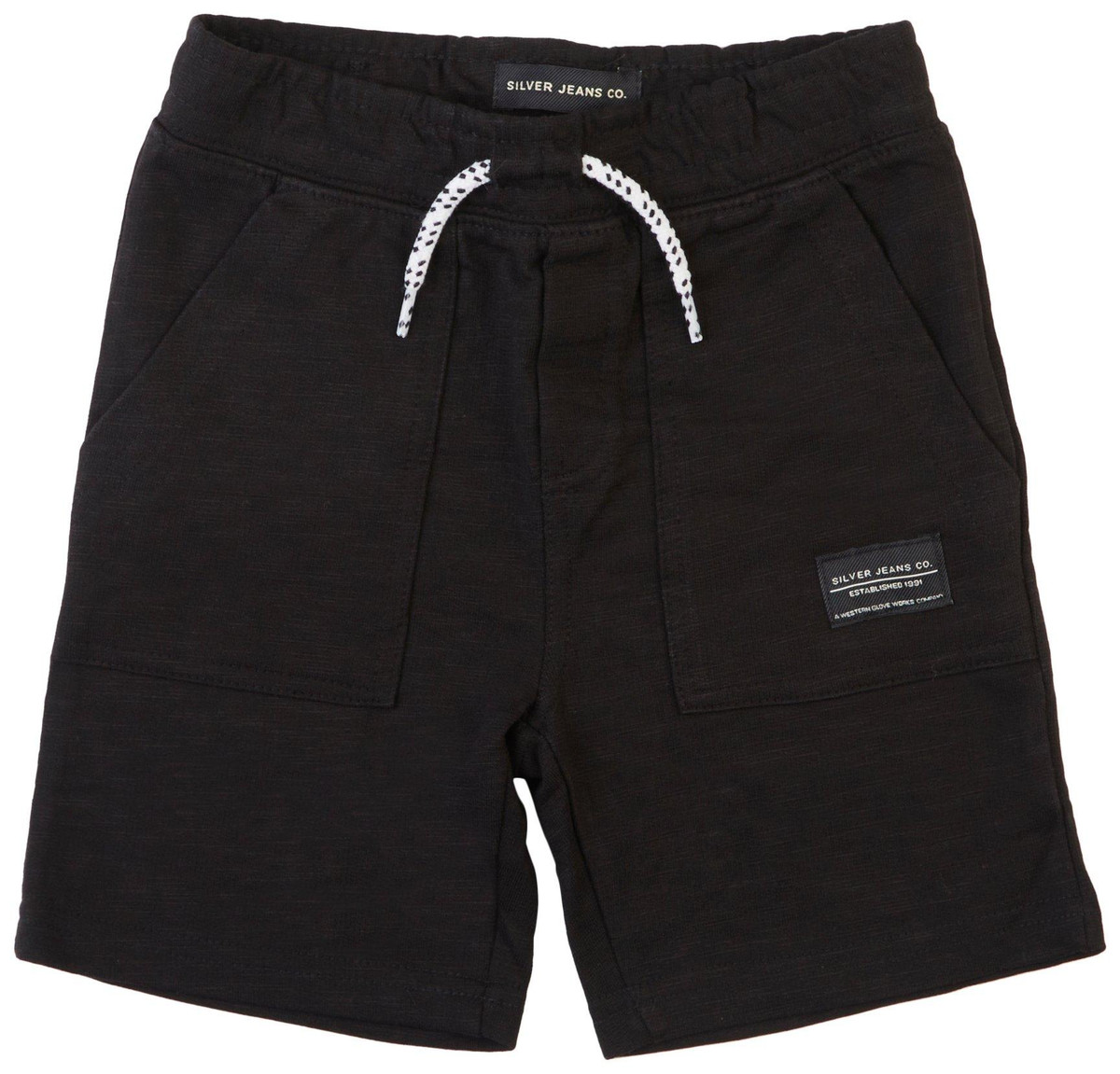 These knit pull on shorts for little boys feature a solid color design with a comfortable drawstring waistband and side seam pockets. Made with a soft knit fabric, they are perfect for everyday play and casual wear. Fabrication 80% cotton, 20% polyester