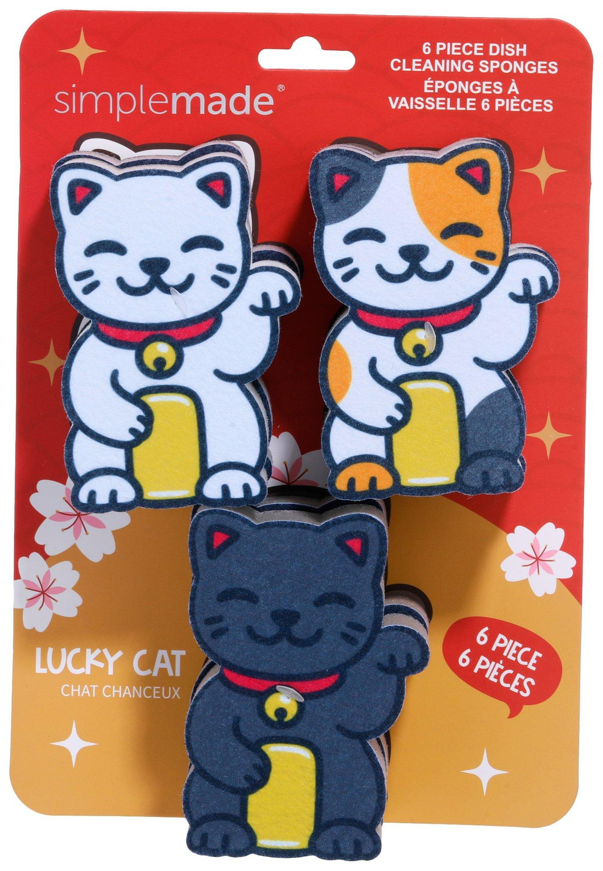 Simple Made 6 Pk Lucky Cat Dish Sponges