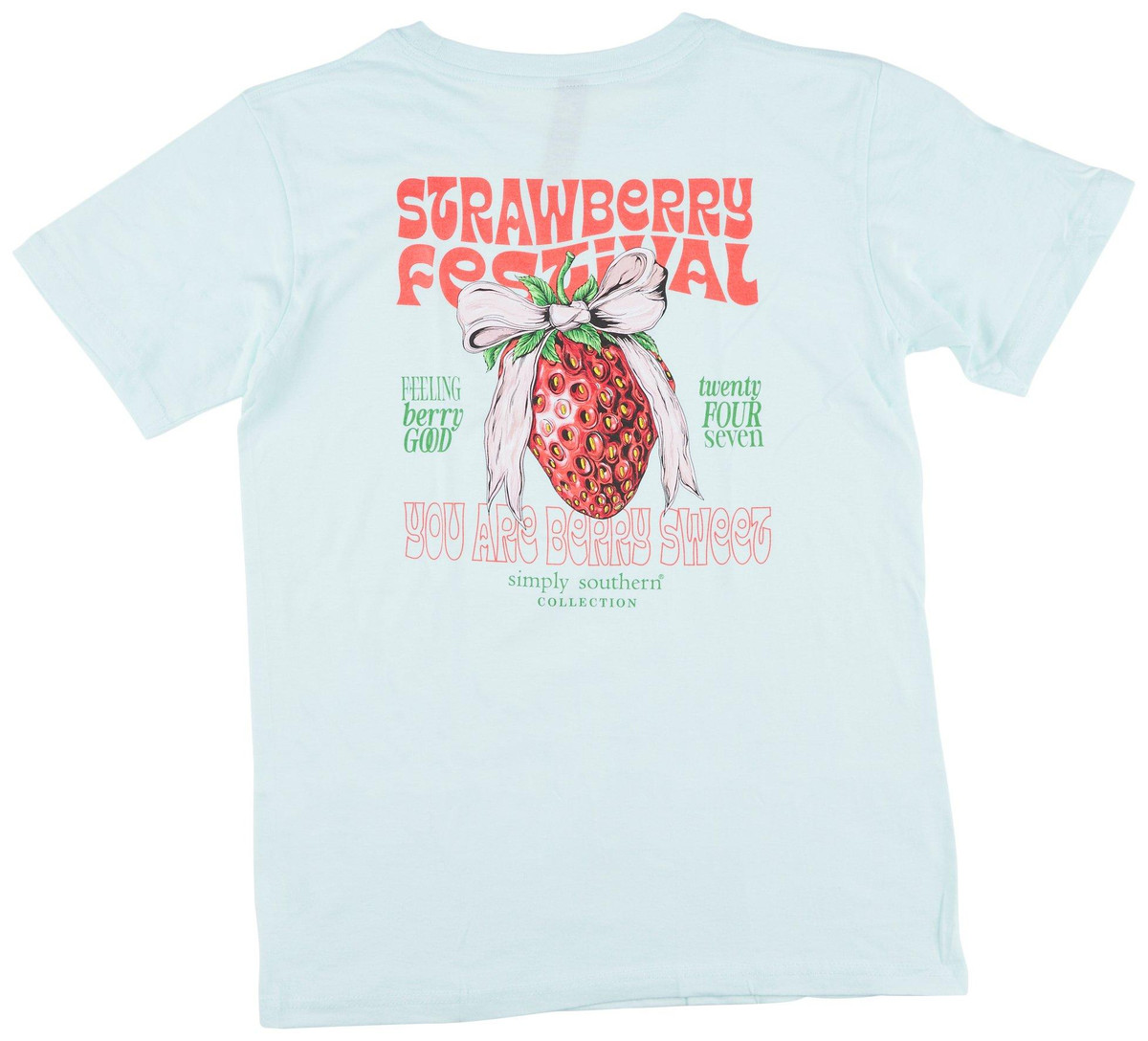 The Strawberry Girl’s Tee is a delightful addition to any casual collection. Made from 100% cotton, this tee features Big Strawberry Screen print with a Bow and with the uplifting Feeling Berry Good quote on the back. The crew neckline and short sleeves ensure comfort and ease, making it perfect for relaxed days and beach outings. Embrace the positive vibes and laid-back style with this fun and cozy tee.