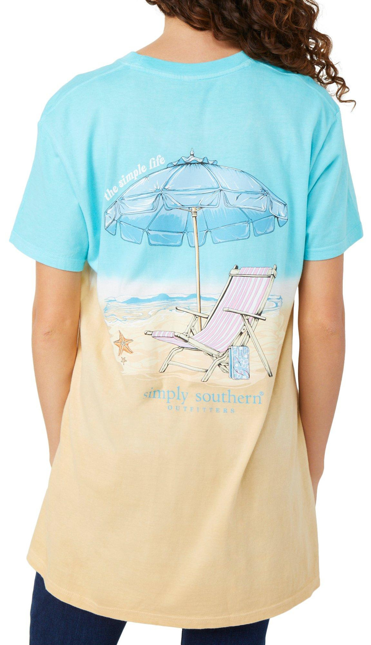 Soak up the sun in the Juniors Beach Chair Tee. Featuring short sleeves, a comfy crew neckline, ombre coloring, subtle brand script on the chest, and a lighthouse graphic on the back, its the perfect blend of beachy vibes and laid-back style. Fabrication 100% cotton