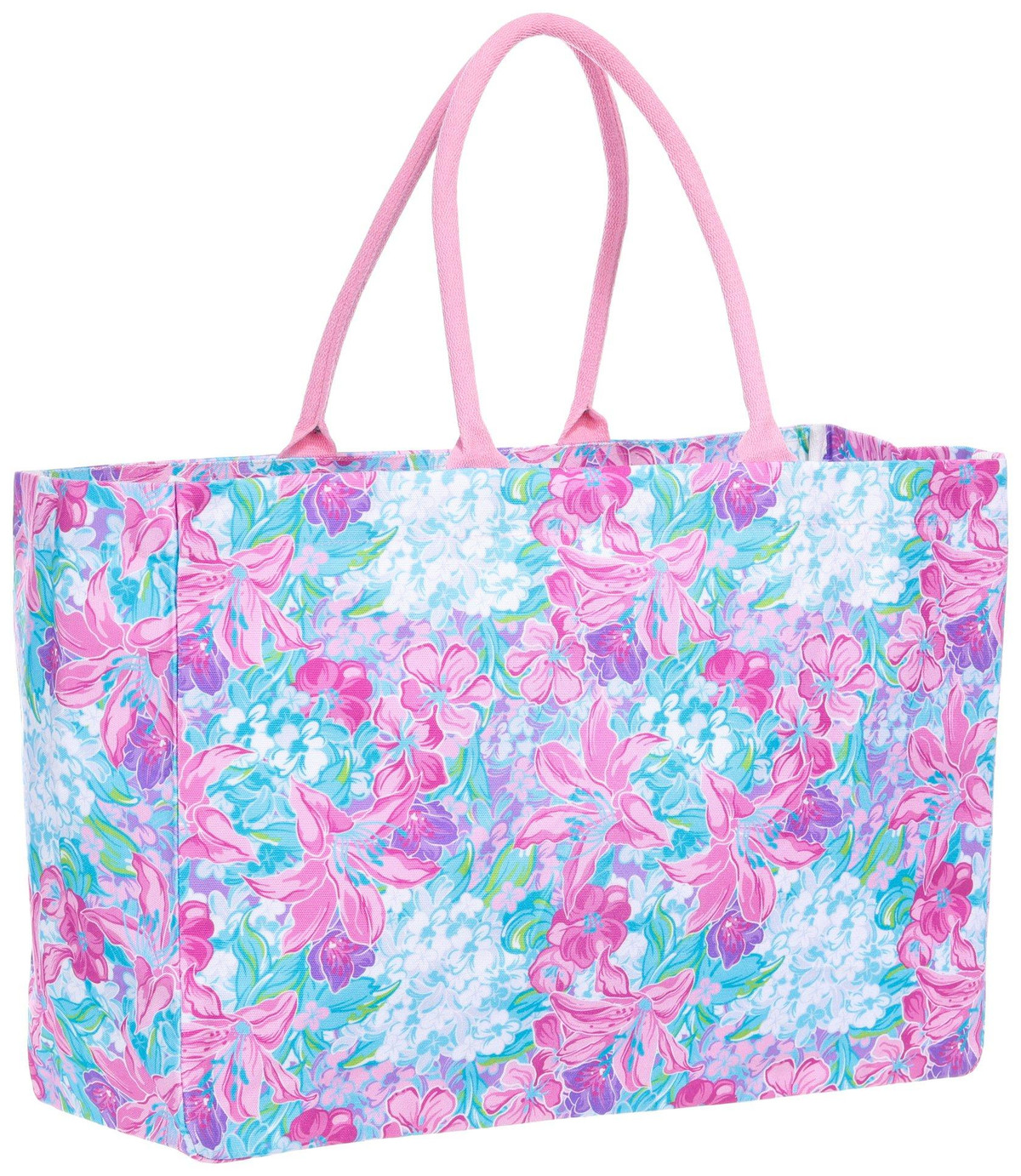 Add a pop of color to your day with this large, print Tote Bag. Made from durable polyester, it features two soft handles for comfortable carrying and a small interior zippered pocket to keep your essentials secure. Spacious and stylish, its perfect for beach days, shopping trips, or everyday errandsbringing both function and floral flair wherever you go. Measures approximately 20 in x 14 in x 7 in.