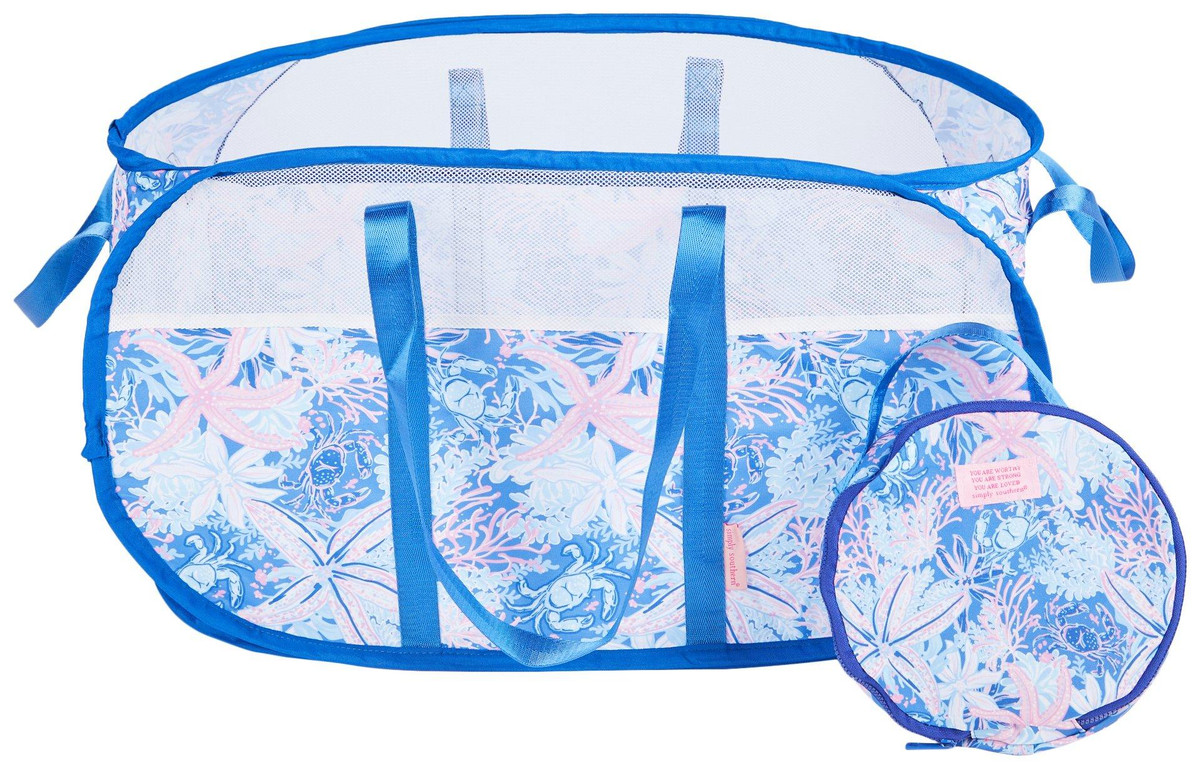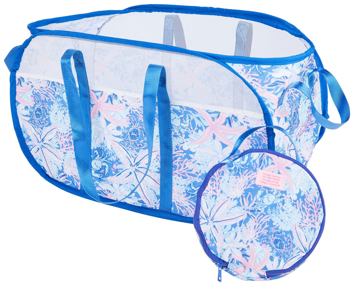 This Reef Print Pop Up Trunk Tote is great for any beach or pool day to keep your things organized and in one place. It is perfect to keep in the trunk of your car, or in your bag while it is collapsed. It easily twists down and fits into a round storage pouch. Pack your towels, sunscreen, and all other beach accessories in this spacious tote. Made of 100% Nylon.