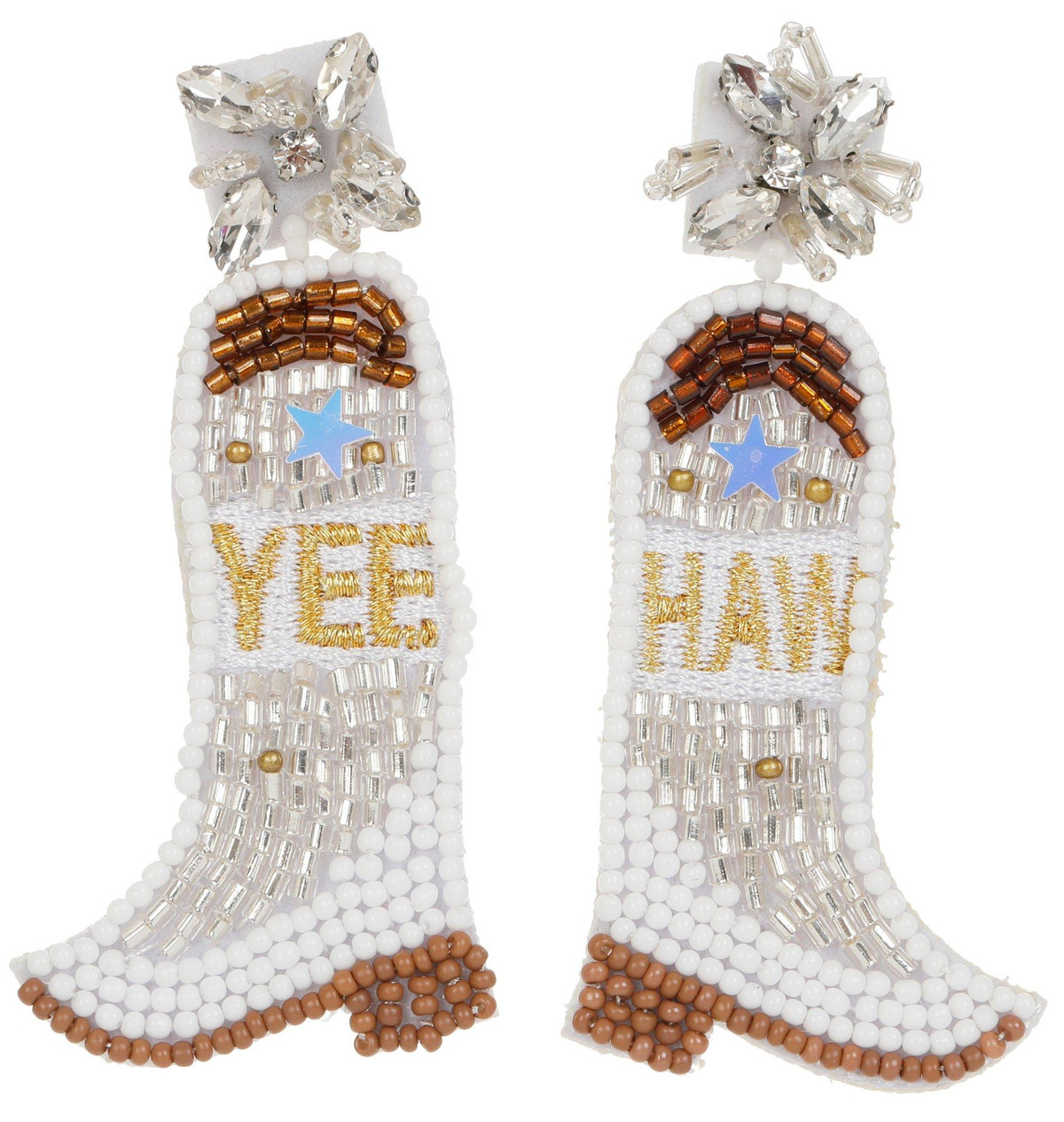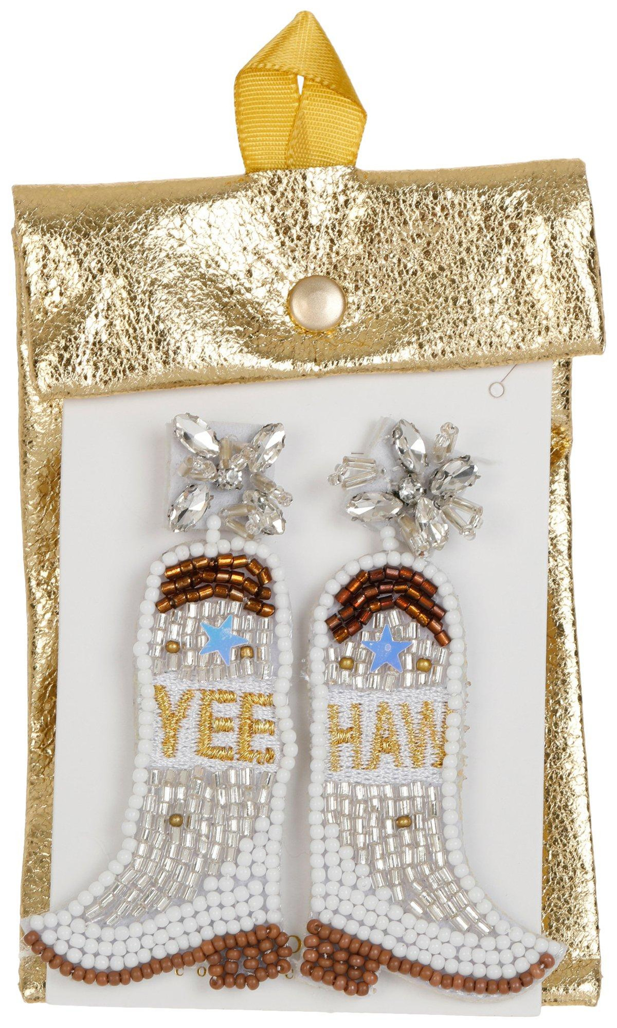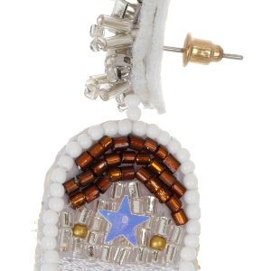 Make a statement with these beaded earrings. Each pair of earrings comes with a dustbag. Made from metal alloy, glass, and plastic. Measures approximately 1.5 in x 3 in.