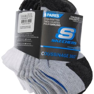 This Boys 8-Pack Quarter Crew Socks set features mesh ventilation for breathability and built-in arch support for all-day comfort. Made from a durable blend of polyester, rubber, and spandex, theyre perfect for active kids on the go.