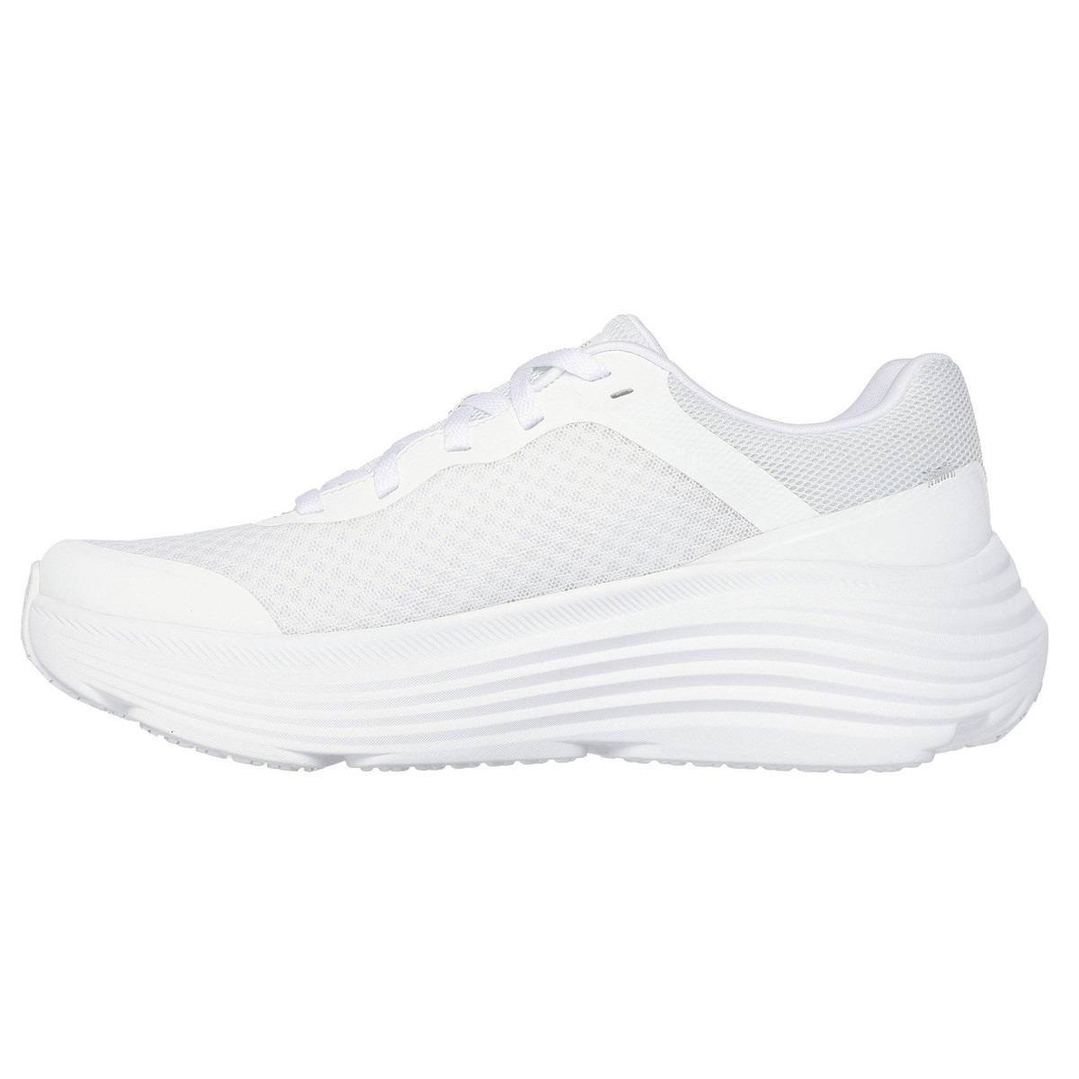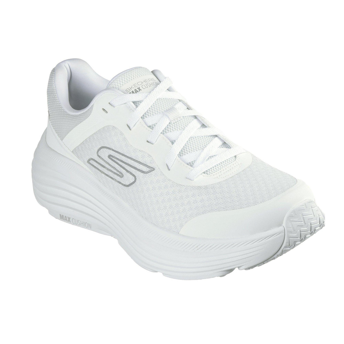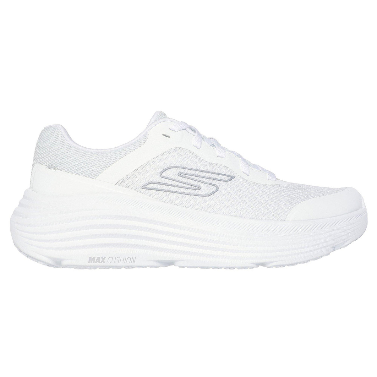 Meet the ground with ultimate performance comfort wearing Skechers Max Cushioning Endeavour. This lace-up shoe features an engineered mesh upper with synthetic overlays, a Skechers Air-Cooled Goga Mat insole, Skechers Soft Stride cushioning foam, and responsive ULTRA LIGHT midsole cushioning. Natural Rocker Technology for a smooth heel to toe transition.