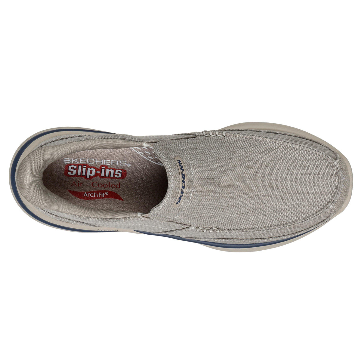 Experience supportive footwear like never before with Skechers Hands Free Slip-ins®: Arch Fit® Superior – Talbert. Designed with our exclusive Heel Pillow, this casual slip-on loafer features a moc-toe canvas upper in a laceless fit and an air-cooled Arch Fit® insole system.Podiatrist-designed shape developed with 20 years of data and 120,000 unweighted foot scans. Removable insole helps mold to your foot to reduce shock and increase weight dispersion.
