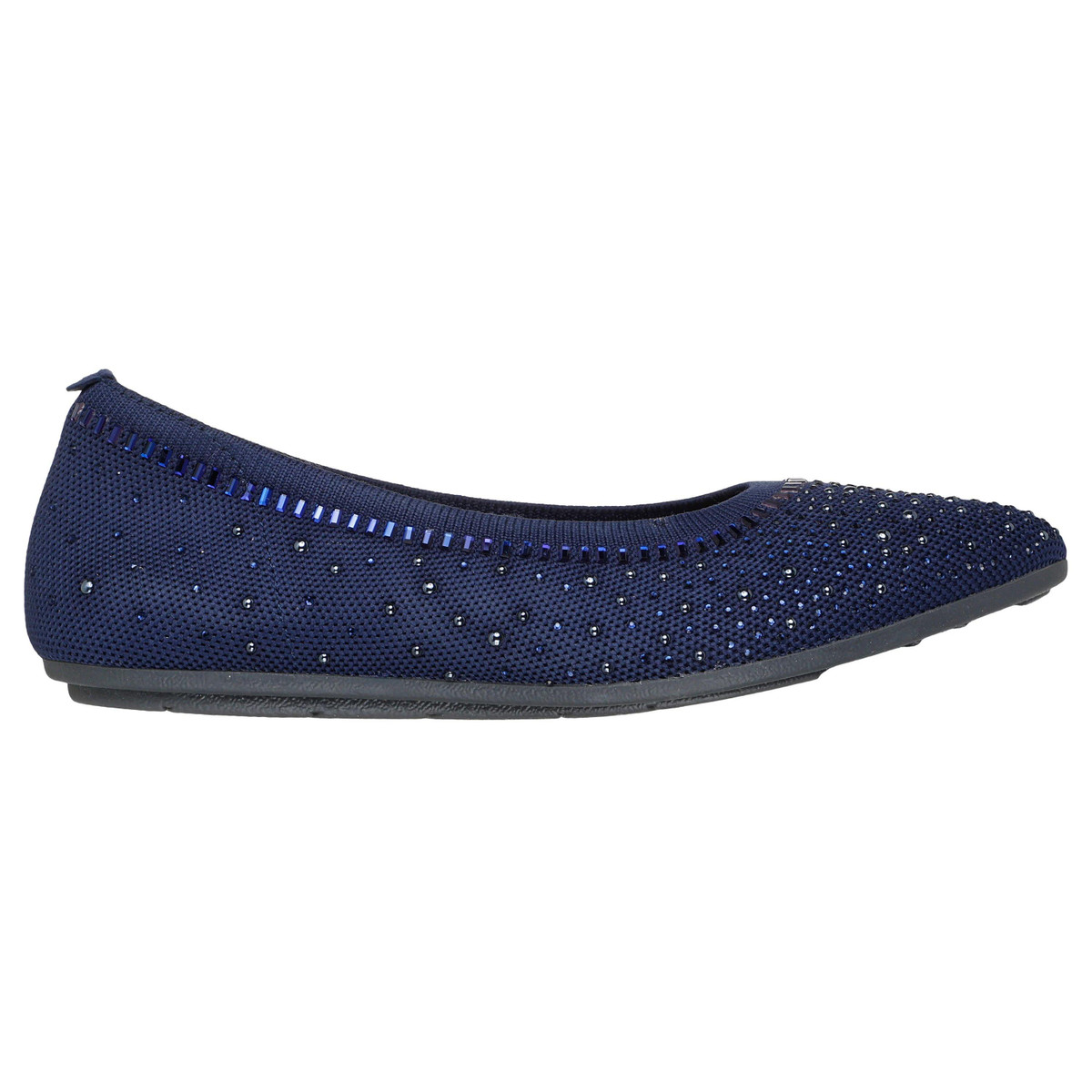Own the night in the Skechers Cleo 2.0 – Mesmerizing Nights women’s flat. With a 20% recycled knit upper featuring black rhinestone embellishments for extra style, these ballet flats are vegan and Stretch Fit®. The Skechers Air-Cooled Memory Foam® insole cushions your steps while you navigate with flexible traction on the outsole.