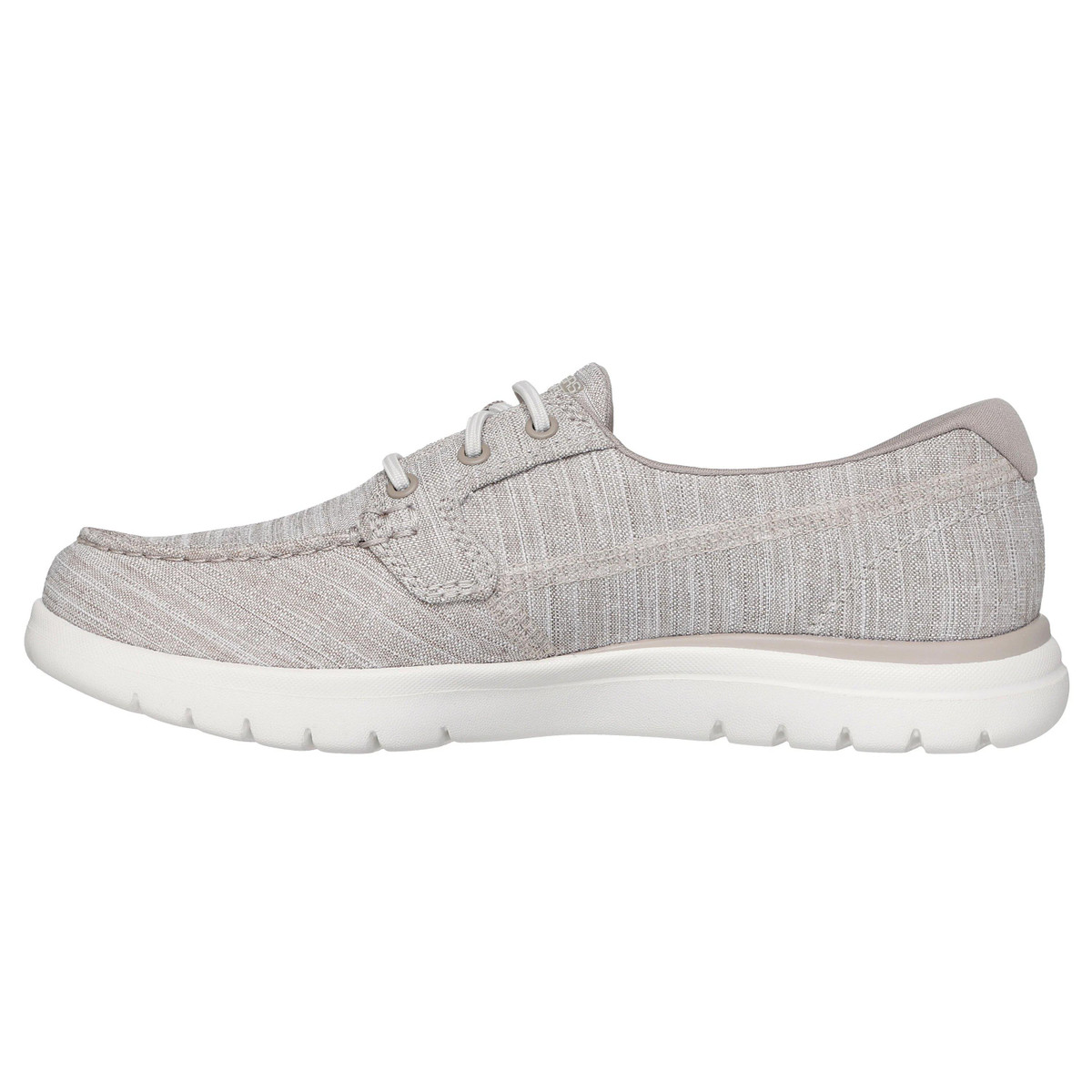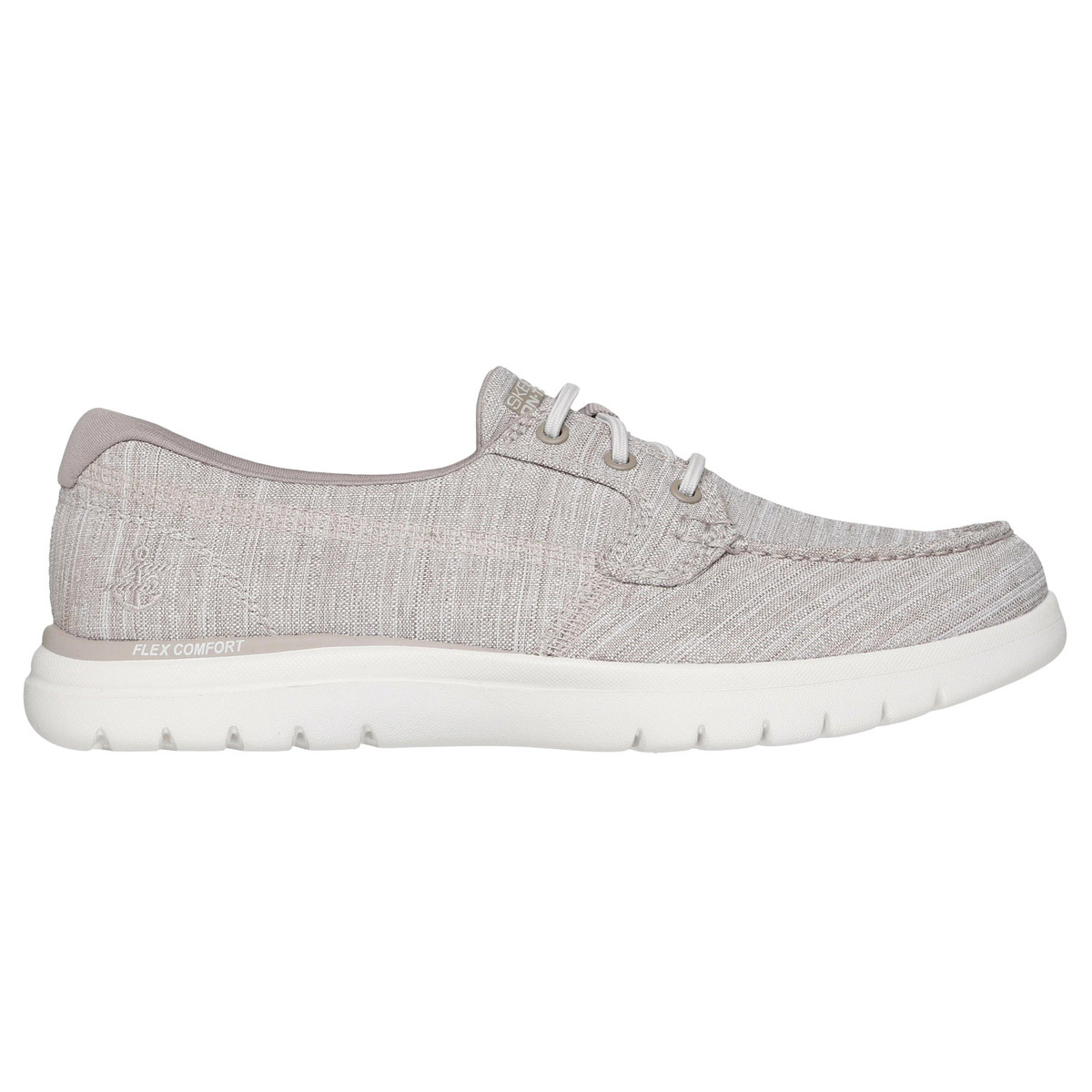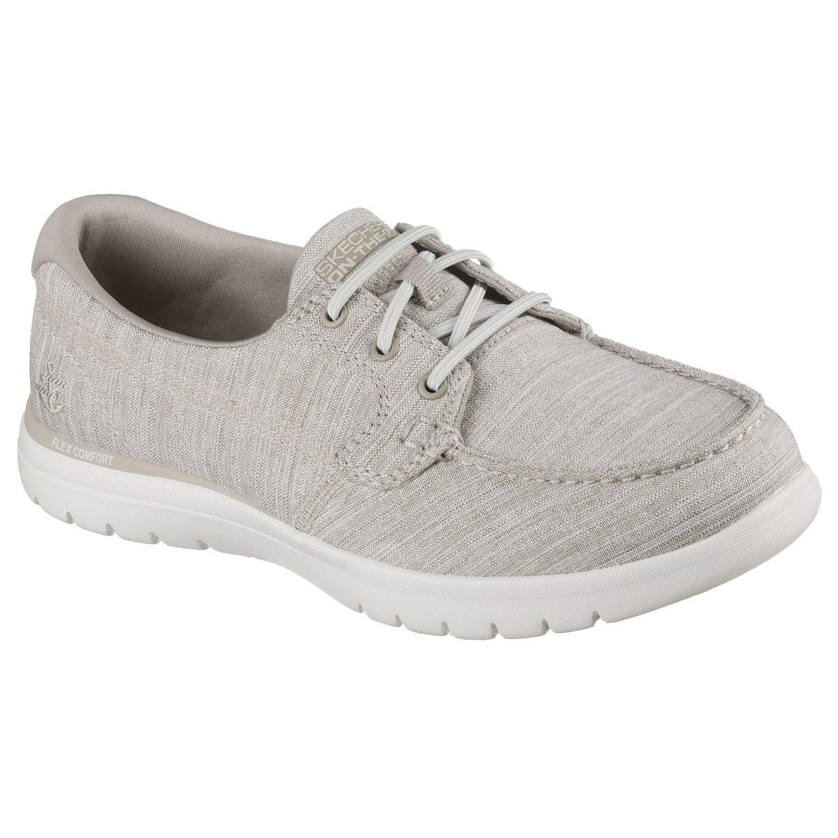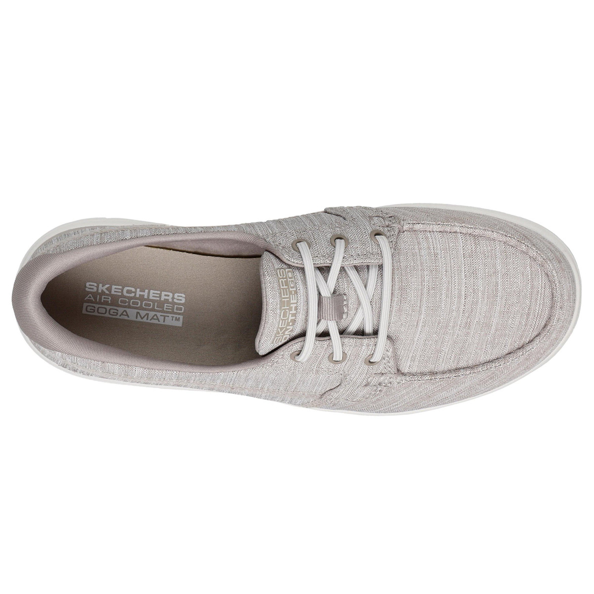 Iconic design and premium materials fuse with innovative Skechers Performance technology to achieve the ultimate in comfort and style. Skechers On-the-GO Flex – Ashore has a colorful heathered finish soft linen fabric upper in a casual boat shoe design with a Skechers Air-Cooled Goga Mat insole and lightweight ULTRA GO cushioning.