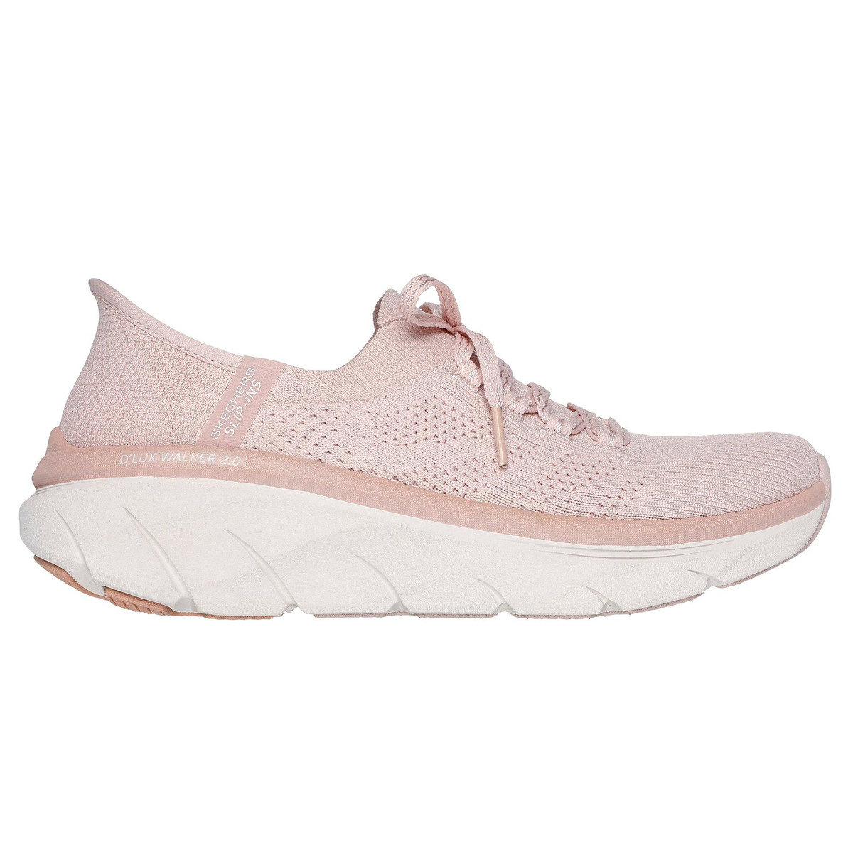 Go for longer walks in comfort and style in the Skechers Hands Free Slip-ins: Relaxed Fit: D’Lux Walker 2.0 – Thrill Movement. Designed with our exclusive Heel Pillow, this smart slip-in shoe features an engineered stretch knit with fixed laces and a Skechers Air-Cooled Memory Foam insole. Designed with Stretch Fit for sock-like comfort and Relaxed Fit design, this shoe is perfect for those who want more room at the toes and forefoot.