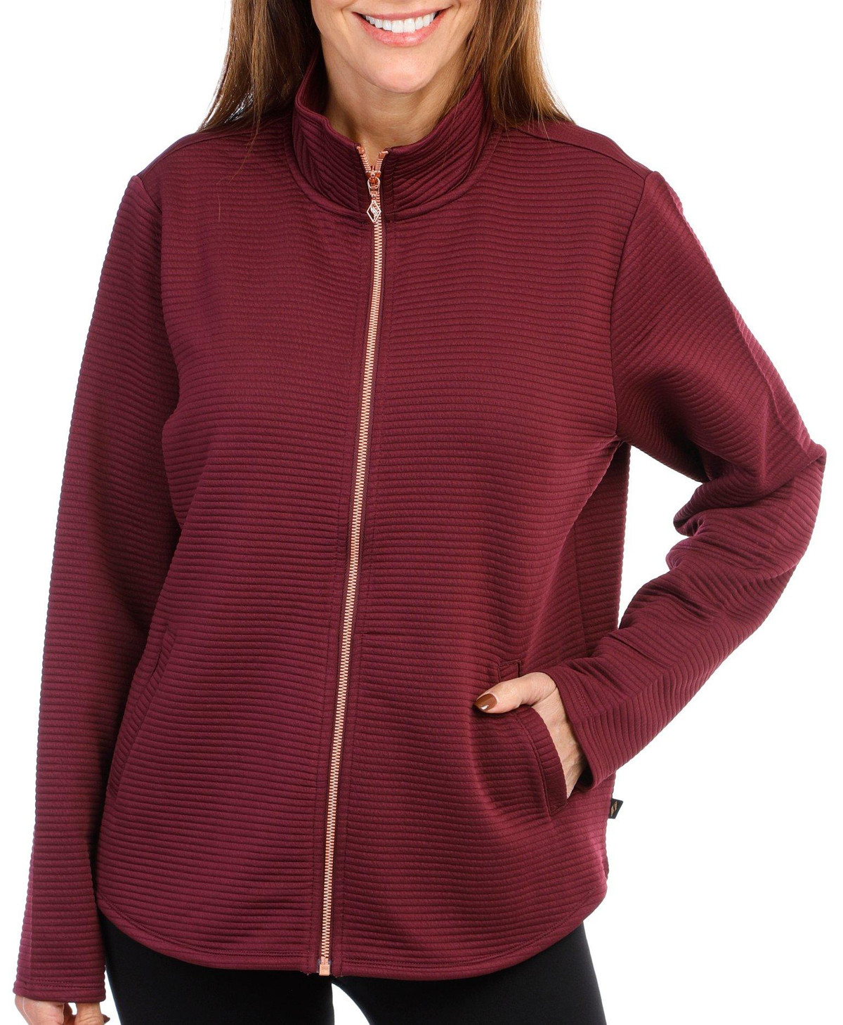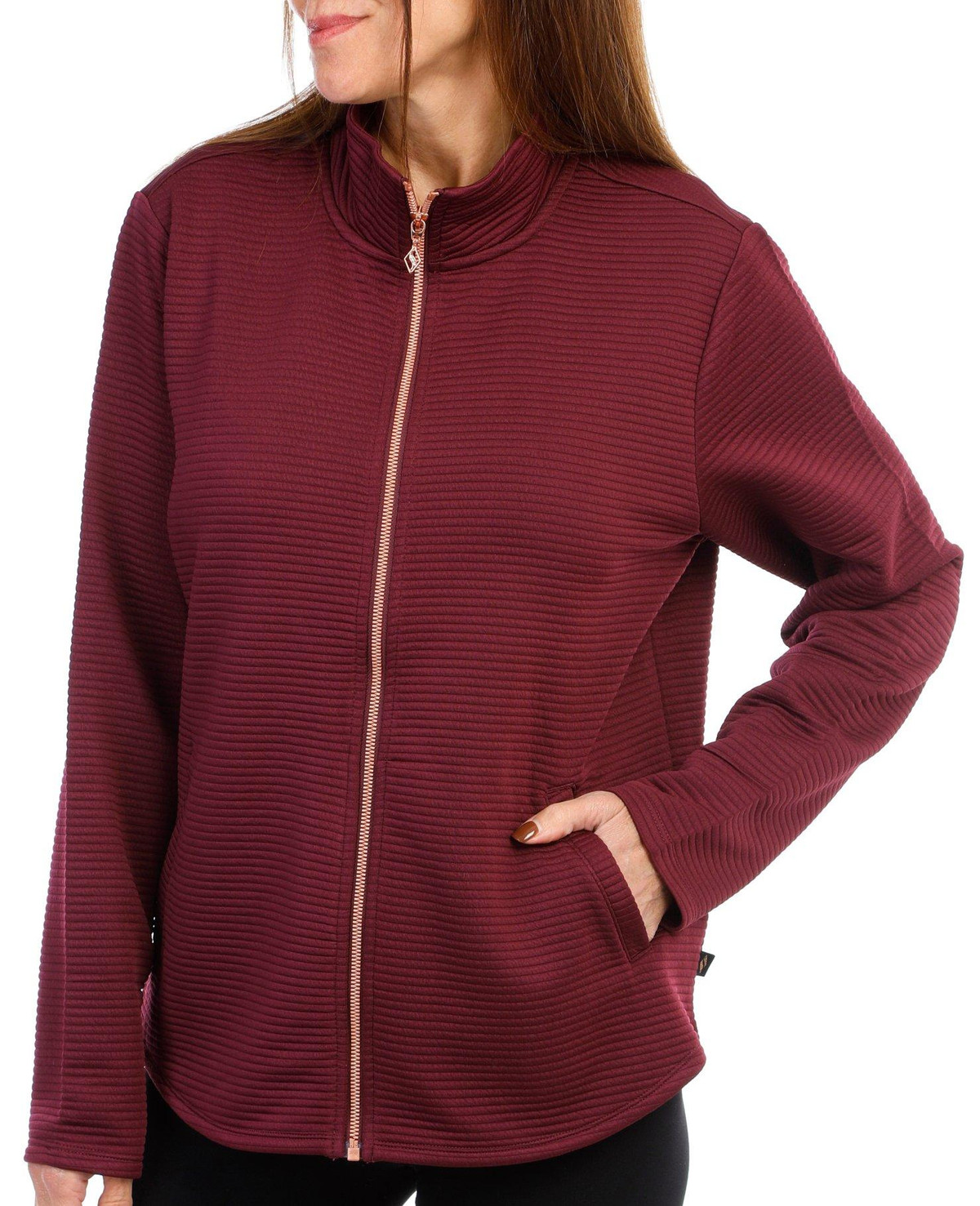 Functional style and plush soft comfort combine in everyday versatility with The Hoodless Hoodie GO WALK Everywhere Jacket. This knit jacket features a soft Skech-Sweats soft brushed fleece fabric, mock neck with a polished metallic zip front, long sleeves and a split kangaroo pocket. 97% Polyester 3% Spandex