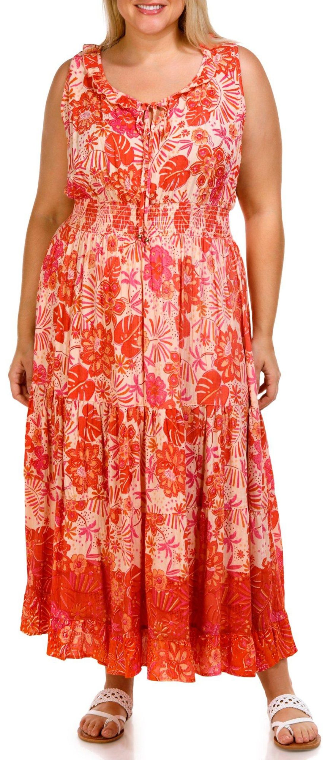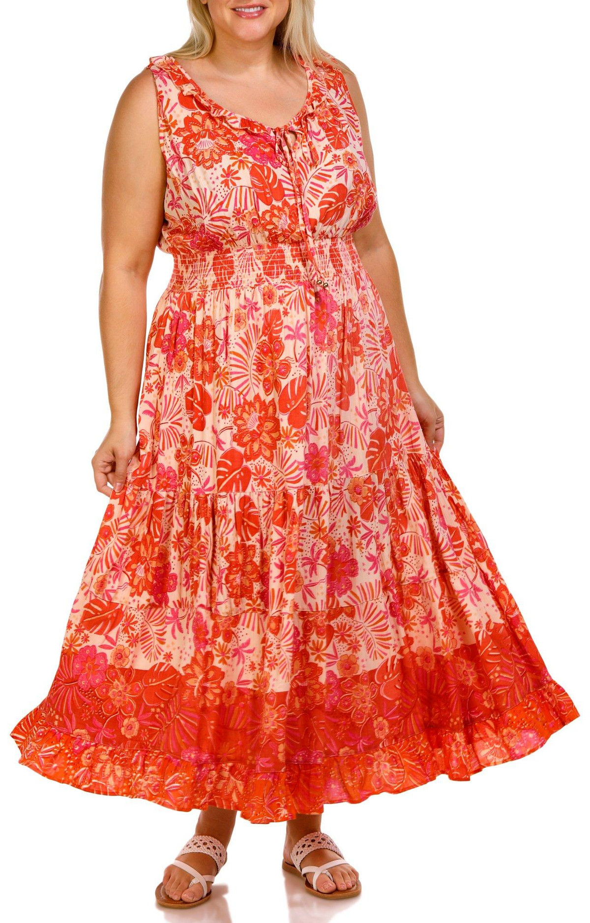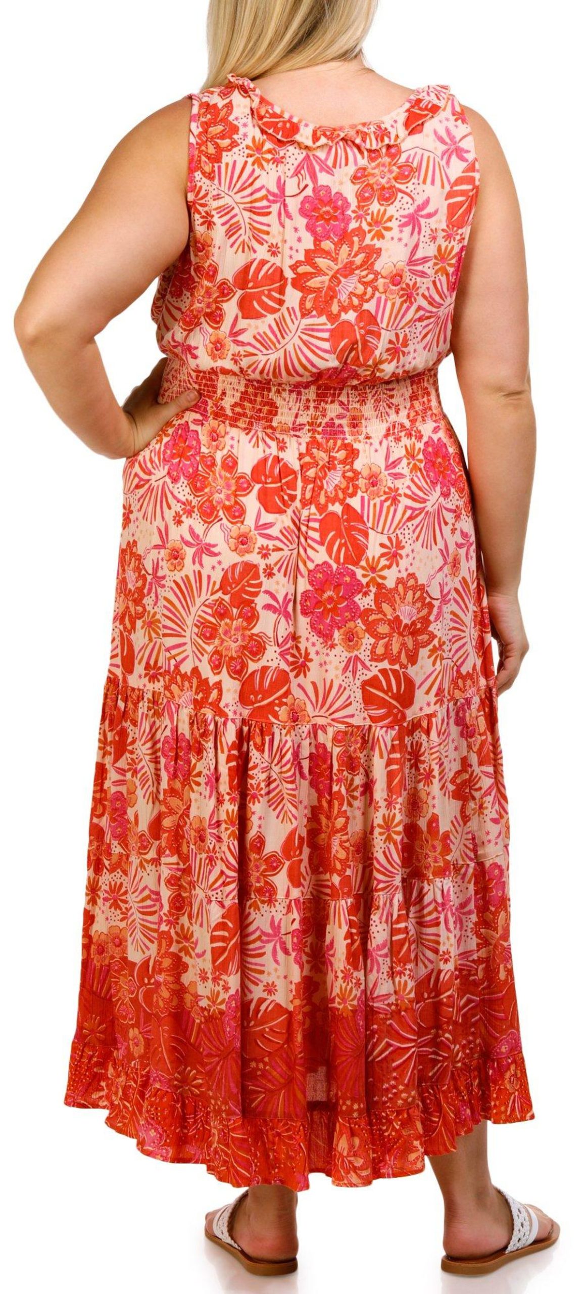 Sky & Sand Plus Sleeveless Tiered Print Maxi Dress