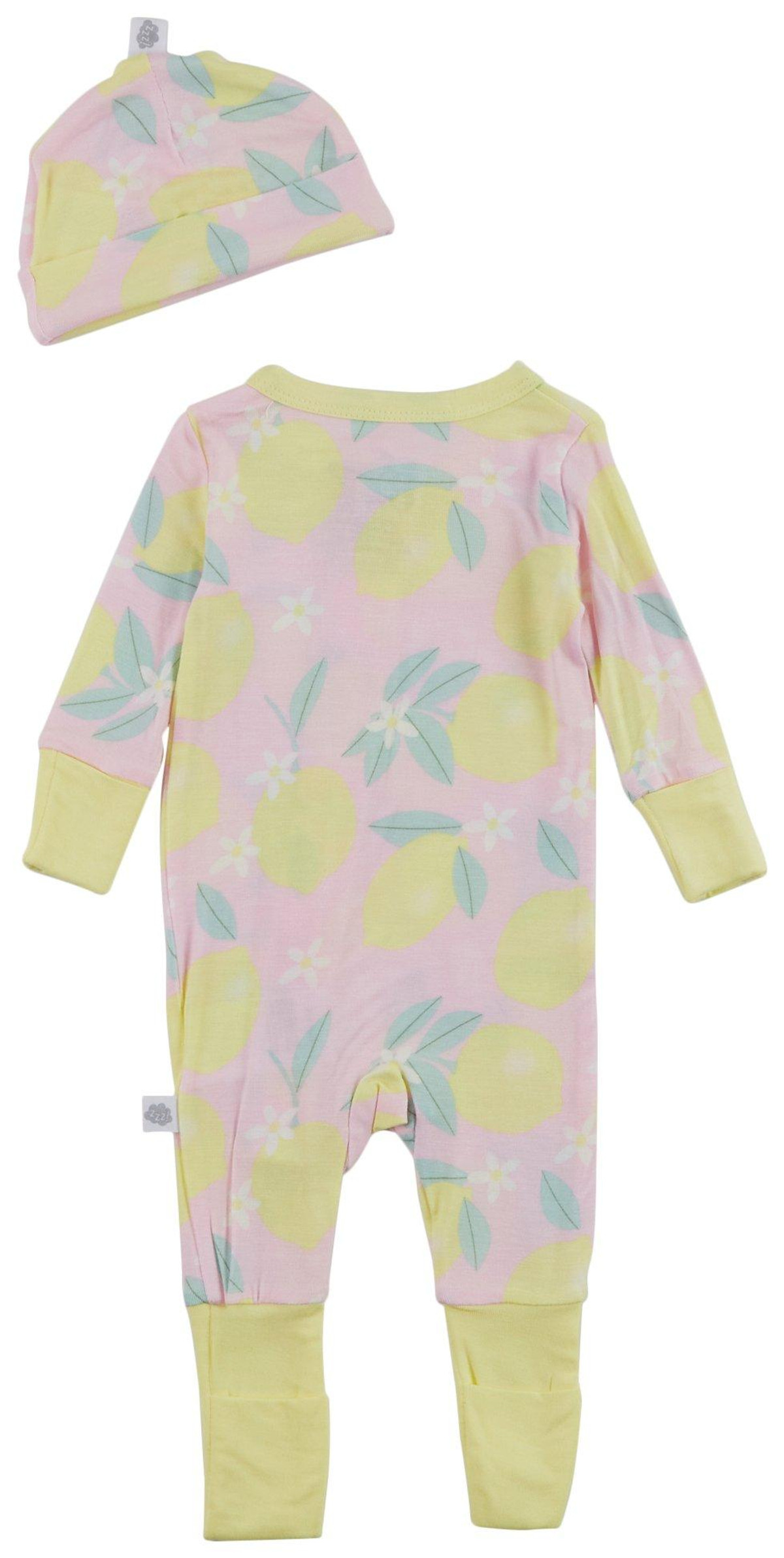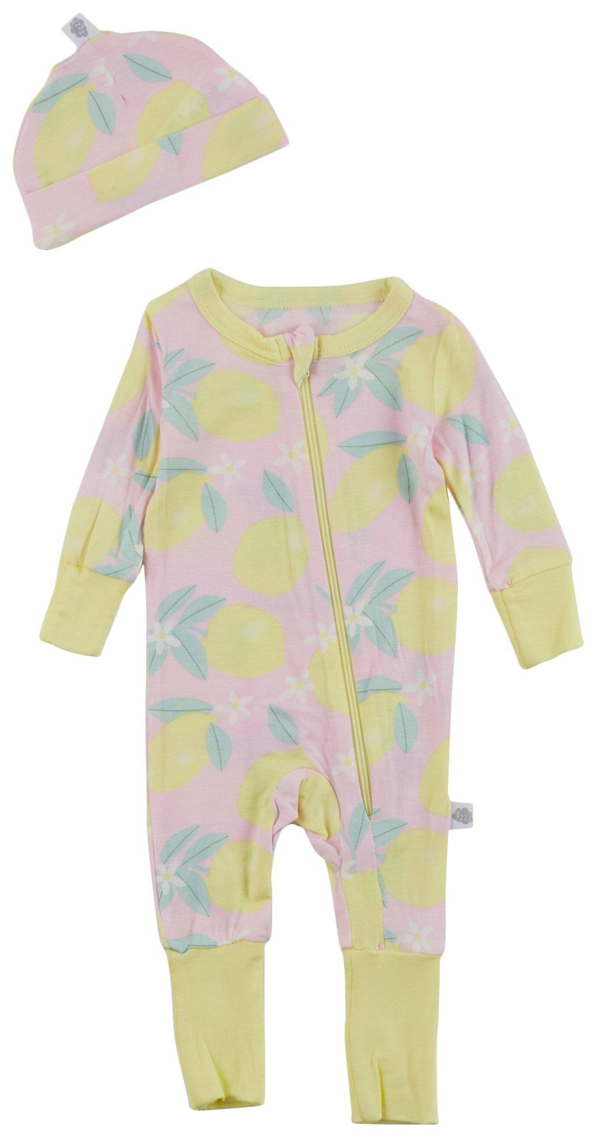 Keep her cozy and covered with this Baby Girl 2 Pc Bodysuit and Hat Set – Lemon. Featuring a soft bodysuit with convertible hand and foot covers, it offers added warmth and flexibility as she grows. The matching hat completes the coordinated look with gentle comfort. Ideal for sleep, travel or everyday wear. Machine wash cold for easy care.