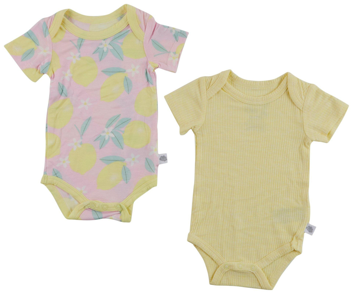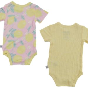 Brighten her essentials with the Baby Girl 2 Pk Bamboo Lemon Bodysuit Set. Made from ultra-soft bamboo fabric, this set includes two bodysuits featuring lemon-themed prints and soft pastel accents. Gentle on delicate skin with snap closures for easy changes. Ideal for warm-weather wear, layering or gifting. Machine wash cold for easy care.