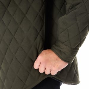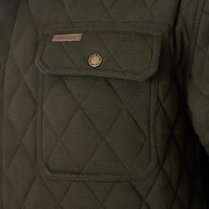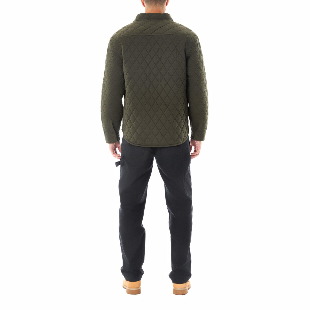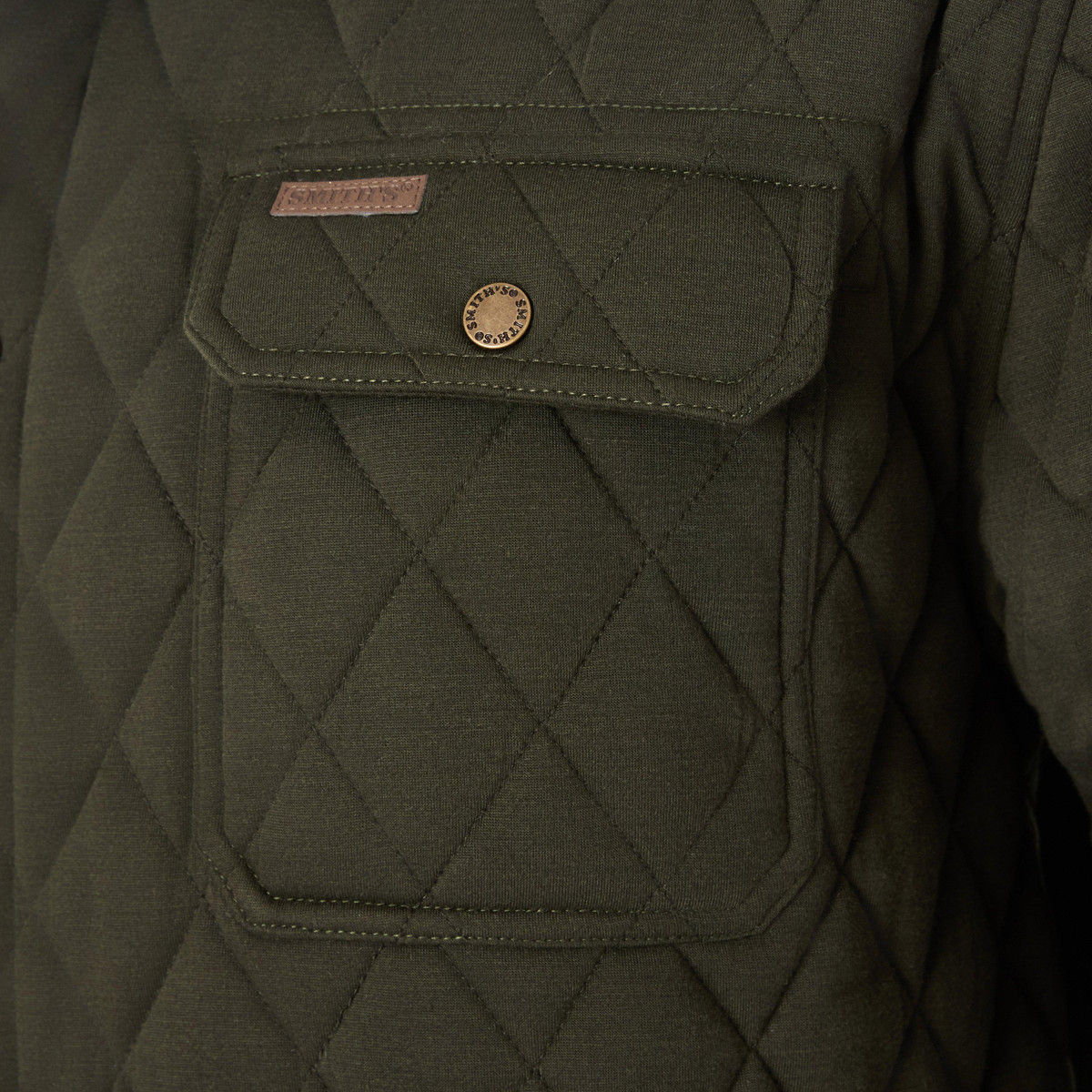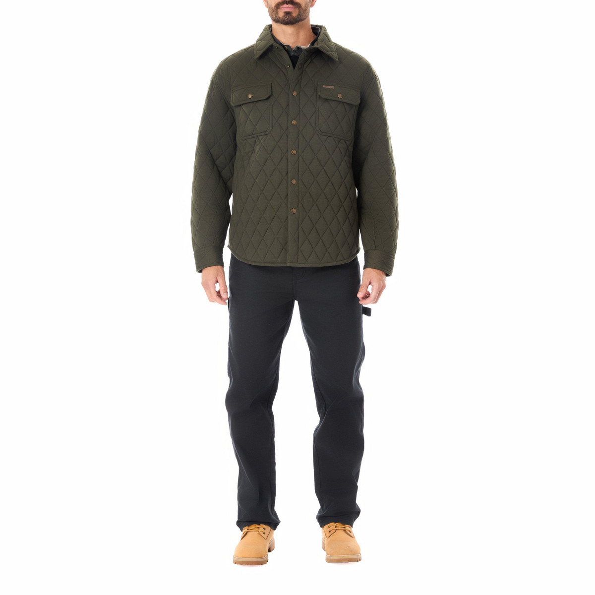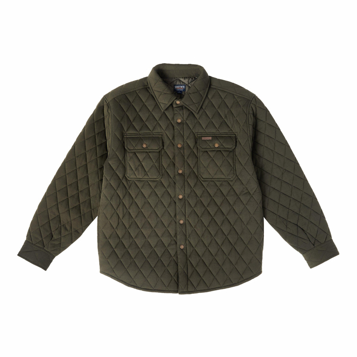 Look great in comfort in our diamond quilted knit shirt-Jac. This easy to toss-on shirt-jacket features snap closures for easy on and off, 2 chest pockets, side seam pockets and adjustable cuffs.