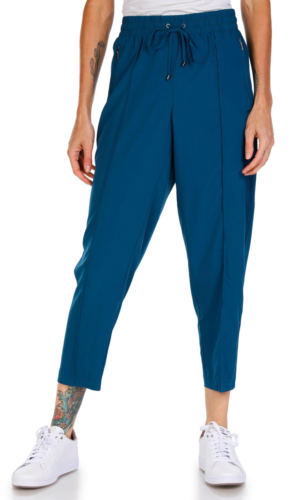 These athletic pants feature a drawstring waist, double zipped front pockets, and 4 way stretch for maximum comfort and mobility. Perfect for workouts or casual wear they move with you all day long. Fabrication is 90% polyester, 10% spandex.