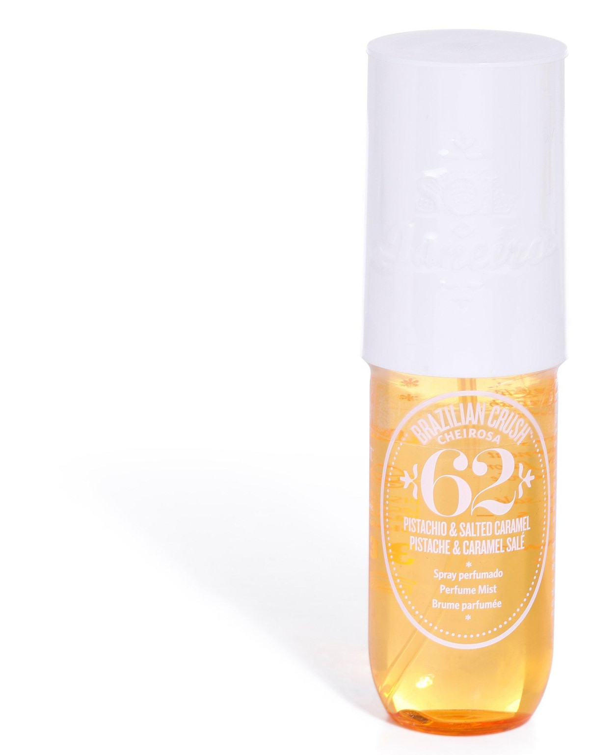 Elevate your scent game with Sol de Janeiros Brazilian Crush Cheirosa62 Fragrance Mist, blending pistachio cream, salted caramel, jasmine, and sandalwood for an indulgent, sun-kissed aroma. Perfect for spritzing on after the beach, during travel, or anytime you crave a daydream escape to Brazils golden coastline. Luxurious, uplifting, and ready-to-go wherever your wanderlust leads. Contains 90 ml / 3 oz.