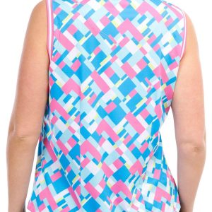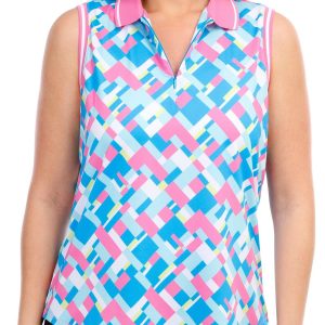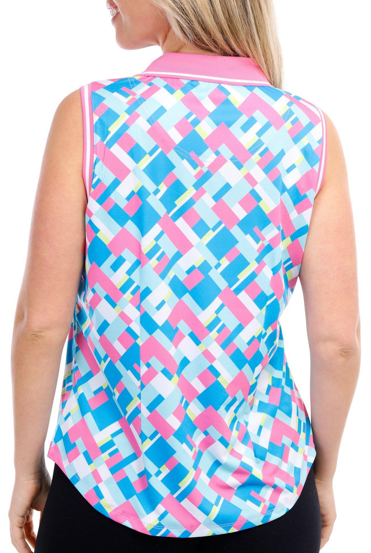 Brighten up your wardrobe with the Sleeveless Polo Top. Featuring a vibrant print pattern, this top adds a splash of color to any outfit. The 1/4 zip placket offers a modern and sporty touch, while the sleeveless design ensures comfort and breathability. Perfect for warm days or active outings, this top combines style and functionality effortlessly. Fabrication is 91% polyester, 9% spandex.
