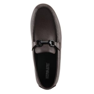 Elevate your style with our fashionable Jarrett driving moccasin style slip-on shoe. Crafted from full-grain soft milled leather, this shoe features a hand-stitched moccasin-style apron and a shiny colored metal saddle trim. The soft PU full-length removable footbed and leather linings ensure all-day comfort. The flexible polyurethane outsole with driving shoe tread and heel provides excellent traction. Perfect for any occasion, this shoe combines elegance and practicality.