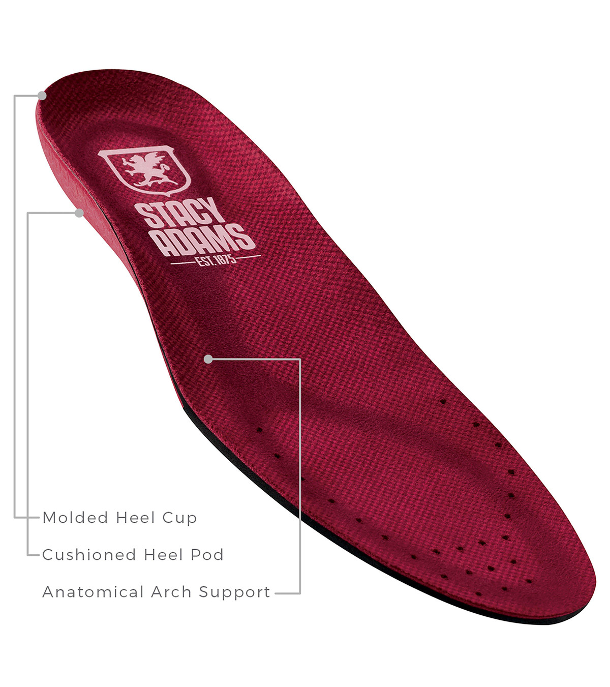 Featuring a felt collar, contrast stitching, an eye-catching welt, and a modern wedge sole, the Stacy Adams Synergy Wingtip Lace Up takes a classic and gives it a thoroughly modern overhaul. Stylish and lightweight, the Synergy also has all-day comfort thanks to The Red Zone footbed. It features a burnished smooth leather upper with felt collar, textile linings, and a durable man-made outsole. Leather sourced from a tannery with a gold or silver rating for environmental responsibility.