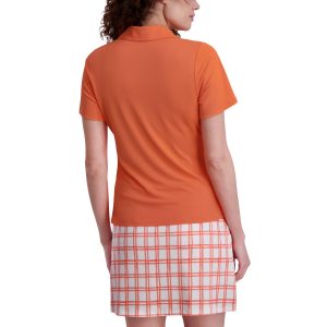 Introducing our versatile polo for the active woman. Designed with short sleeves and a solid color that complements any wardrobe, the Y-neckline and spread collar add a touch of sophistication while the side ruching detail creates a flattering silhouette. Perfect for spring, this polo effortlessly transitions from casual outings to more polished occasions. Embrace the season with style and comfort in this spring-inspired essential. Fabrication 95% polyester, 5% spandex.