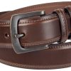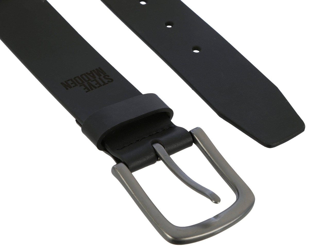 This Modern Belt features a solid color design on a sturdy vegan leather fabrication, and a satin-finish metal rectangular buckle. Measures approximately 36 mm wide.