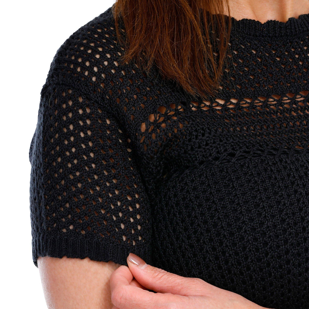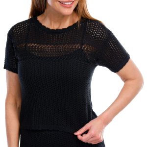 Breathe easy in this effortlessly chic Short Sleeve Top, featuring an airy open knit design that blends comfort with style. Perfect for layering or wearing solo, its breezy texture and relaxed fit make it your go-to for sunny days and cool evenings alike. Casual yet refined, its the versatile piece your wardrobes been waiting for.