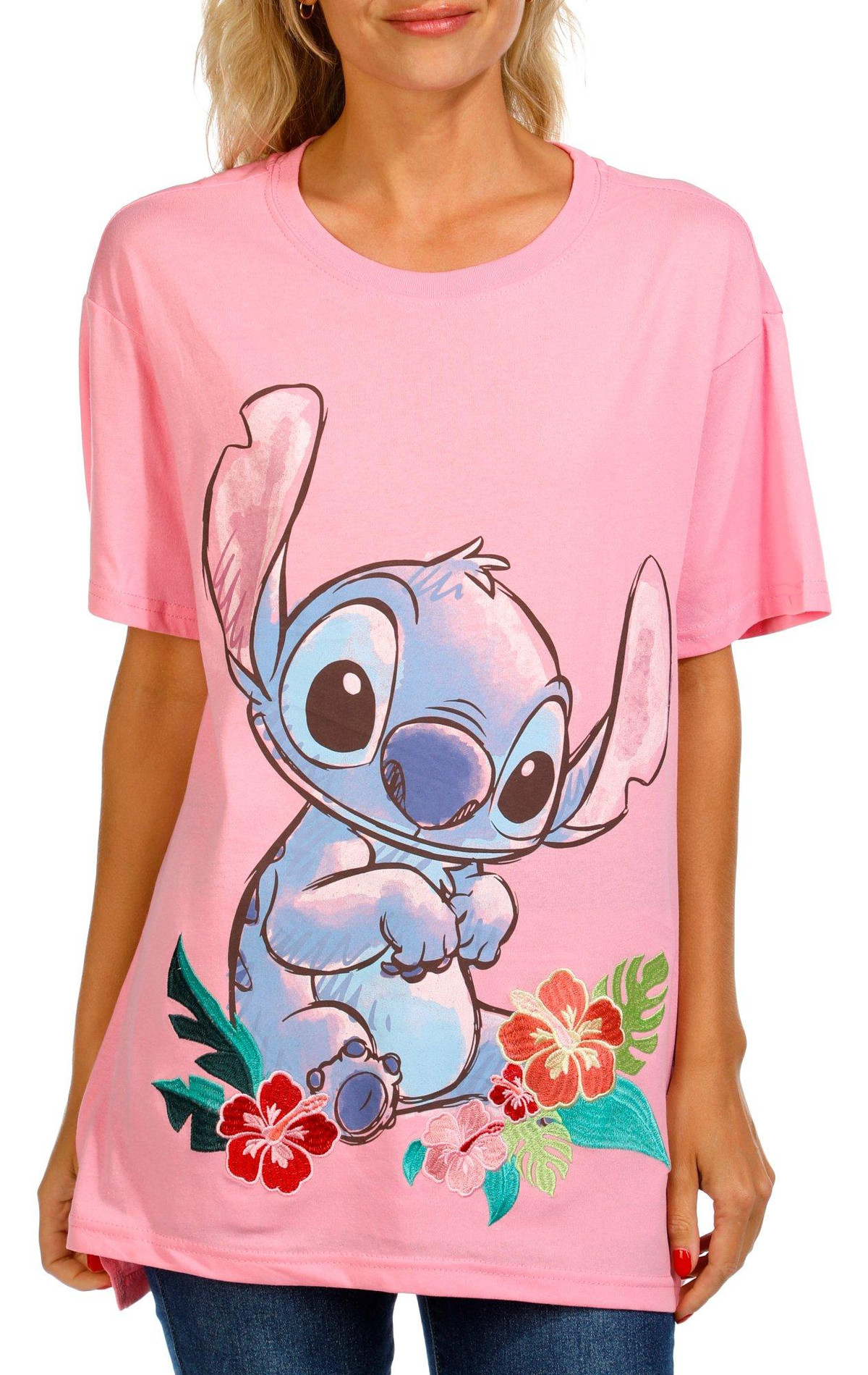 Stitch Juniors Flowers Graphic T-Shirt