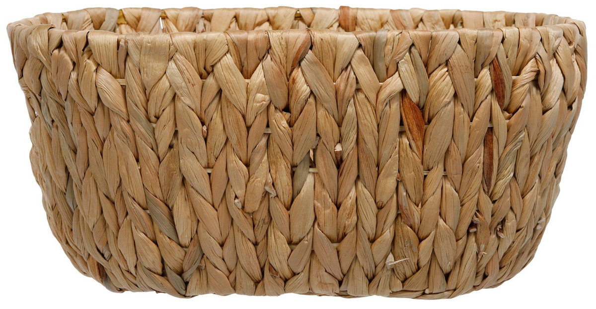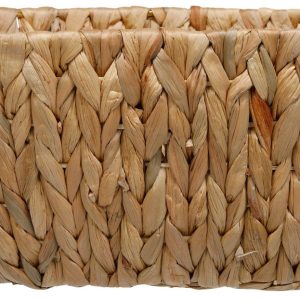 This weaved storage basket features a natural look that adds warmth and texture to any space. Perfect for organizing linens, toys or everyday essentials, this basket combines practical storage with simple style. Measures approximately 10 in x 14 in x 6.5 in.