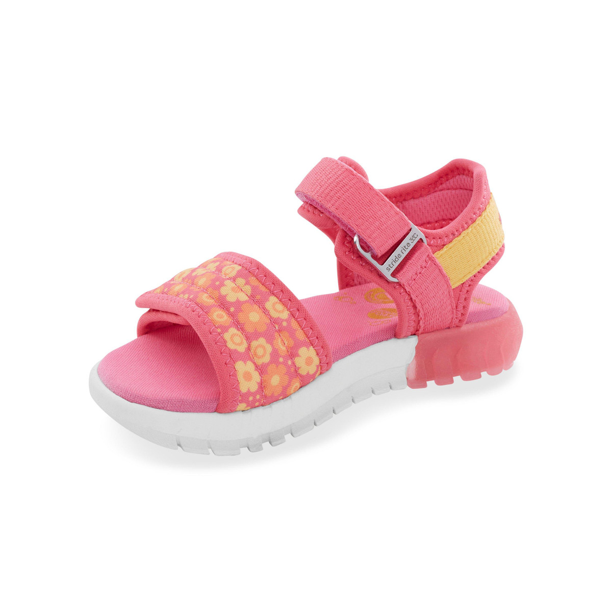 Your kiddo will love walking about in this hook-and-loop strapped sandal that features a twinkling lights at heel.
