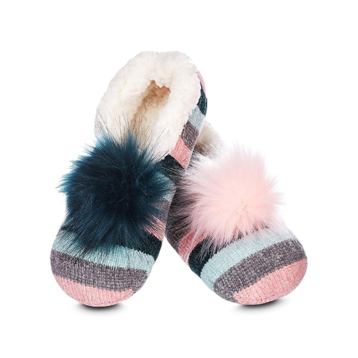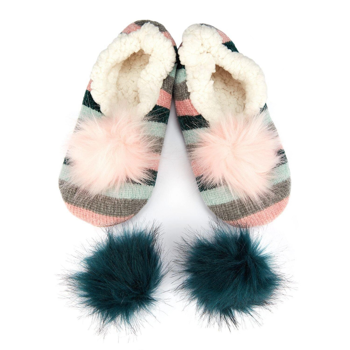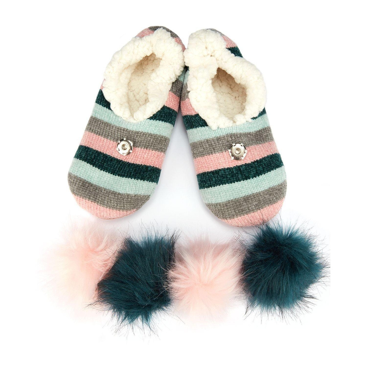 Stripe Chenille Interchangeable Pom Pom Slippers