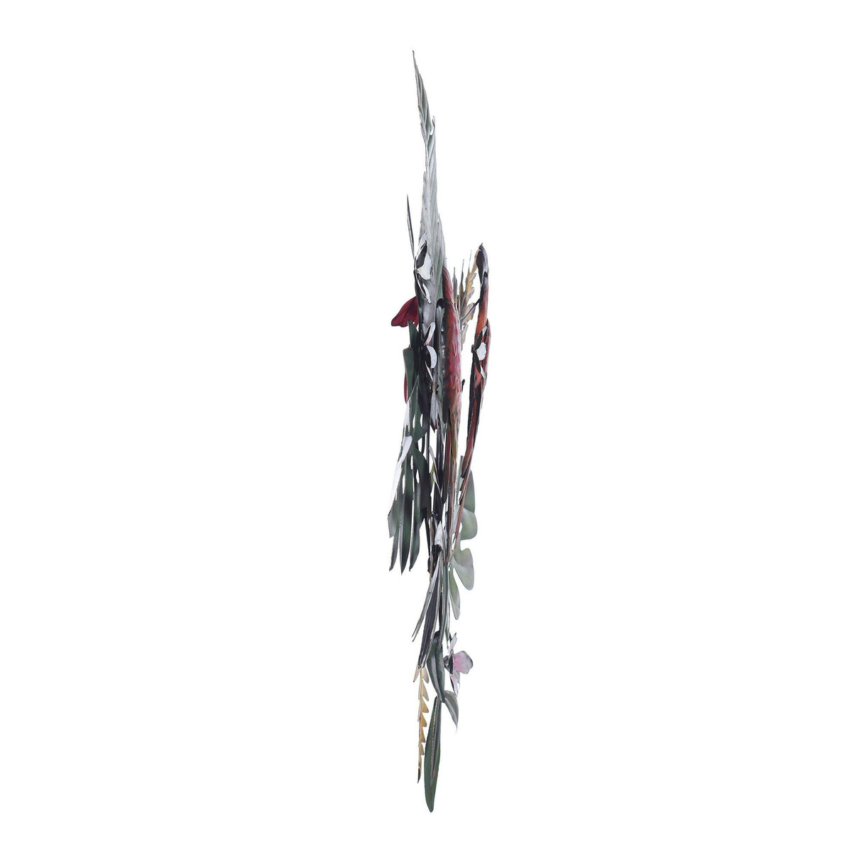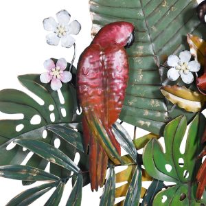 This Wall Decor piece features an artistic arrangement of parrots and foliage, with unique tropical details that add character and charm to any space. The combination of textures and finishes creates a visually striking focal point, perfect for enhancing the aesthetic of your home. Measures approximately 32 in x 32 in.